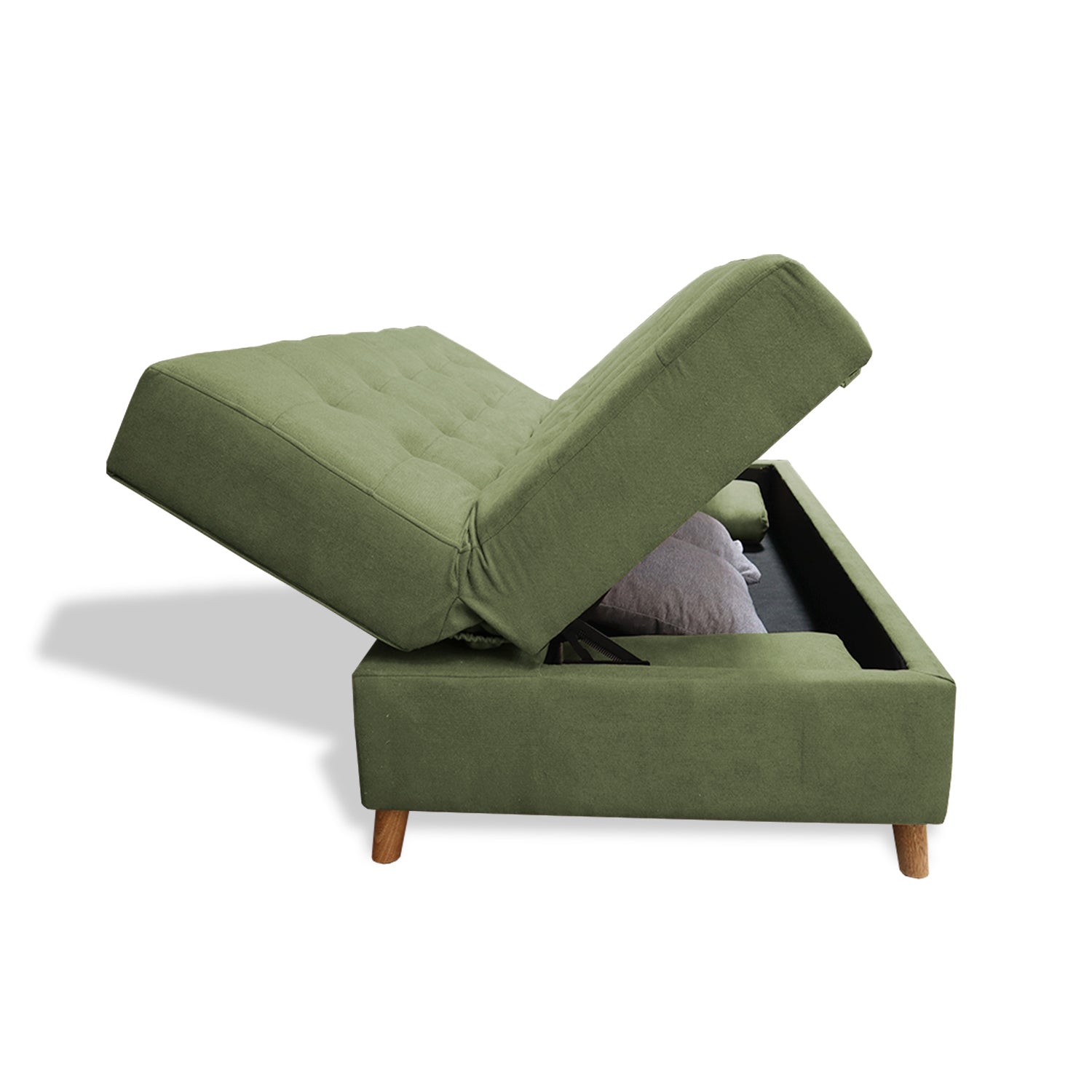 Sofacama Lugano Verde 180x95cm de Tres Puestos Reclinable Antifluido con Almacenamiento y sin Apoya Brazos