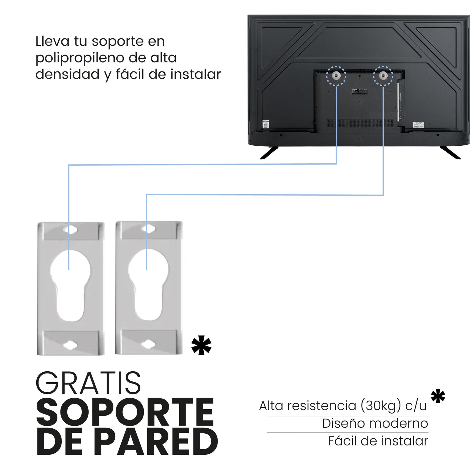 • Soporte de pared incluido para una fácil instalación.