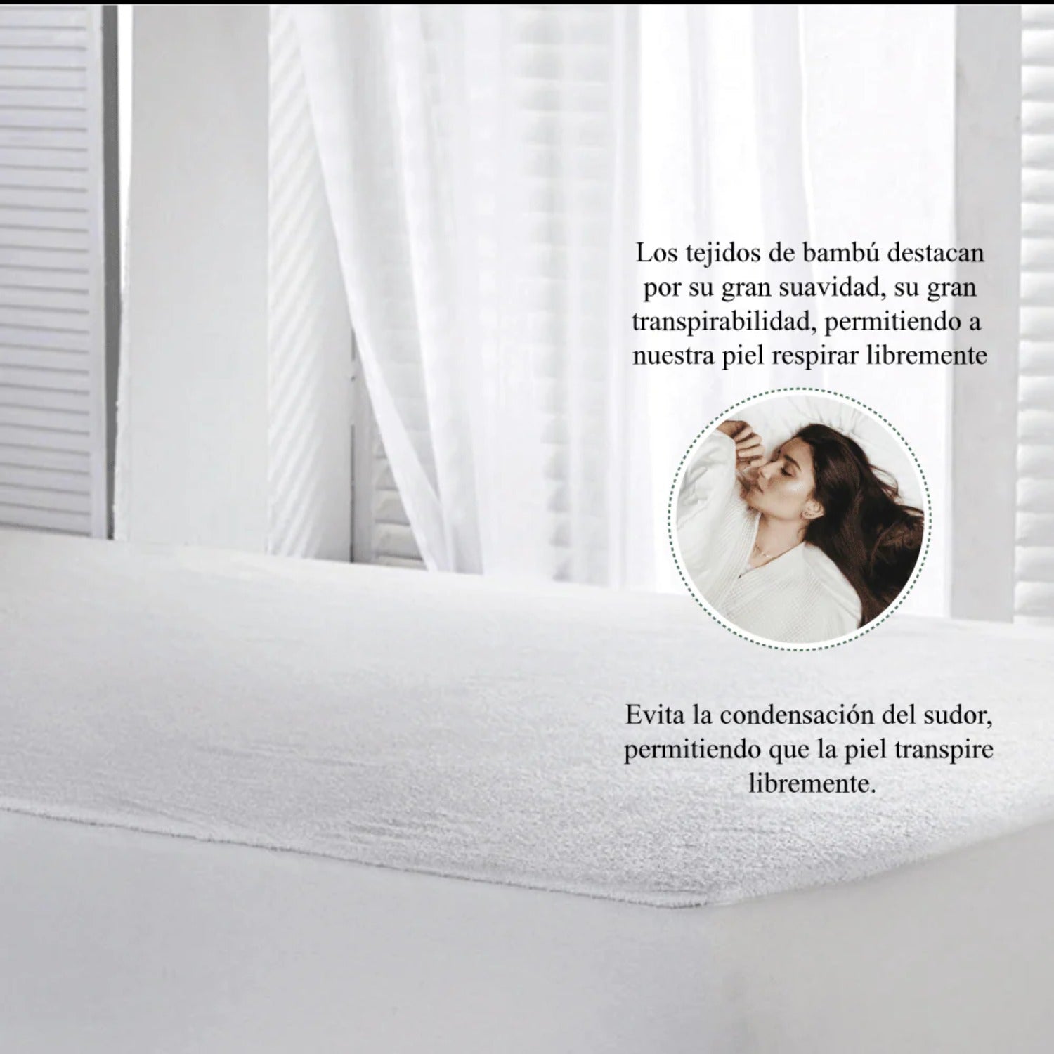 Protector de Colchón Impermeable Bambu Rizo Blanco Para Cama Semidoble 120 X 190 Cm