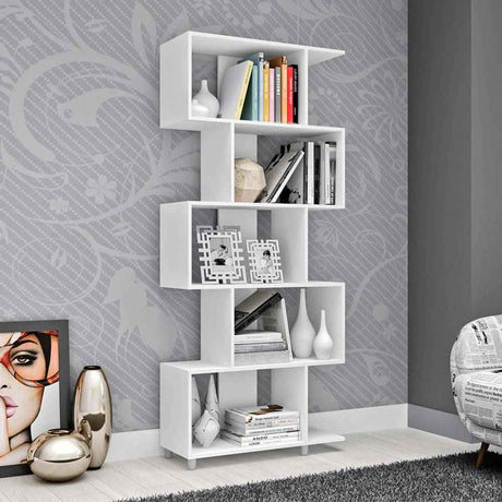 Biblioteca Asimétrica Moderna Blanco 79 cm con Cinco Nichos