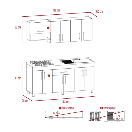 Cocina Napa Wengue y Blanco 100x49cm Con Mesón Pozuelo Izquierdo y Sin Estufa