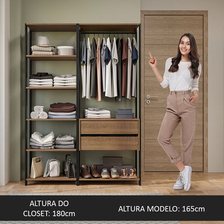 Armario para Ropa Moobi Café y Beige 98x181cm con Dos Cajones y con Cuatro Puertas