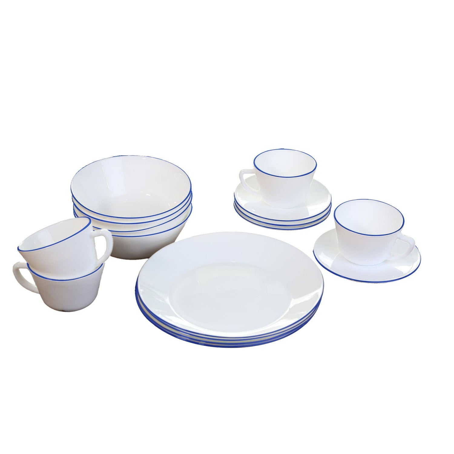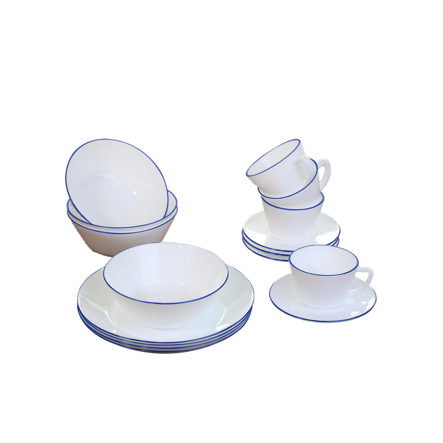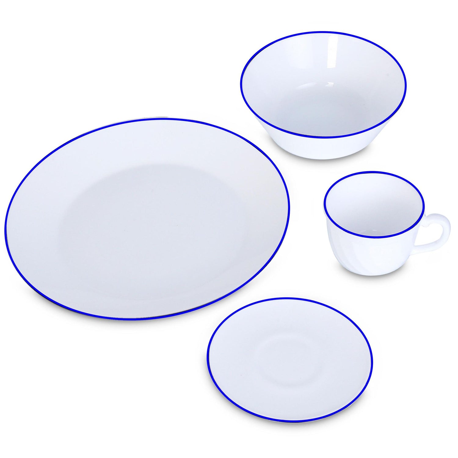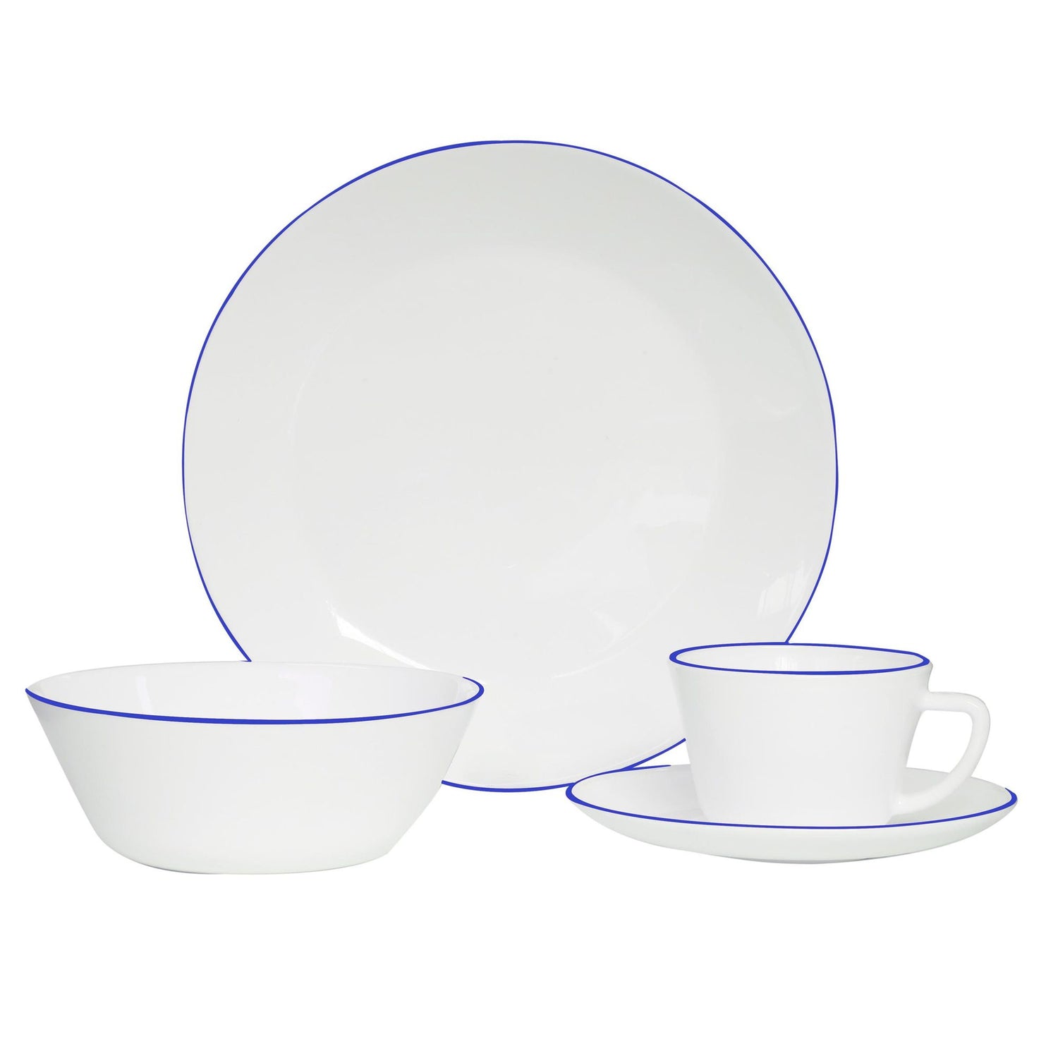 Juego de Vajillas de 16 Piezas Vitrocerámica Blanco y Azul 24x2.5cm para Cuatro Puestos con Acabado Brillante