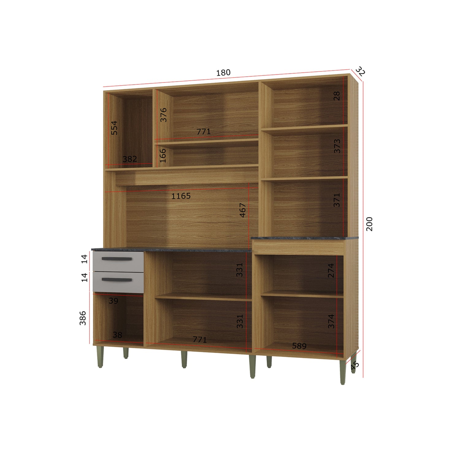 Alacena Elisa Castaño y Beige 180x200cm con Dos Cajones y Diez Puertas