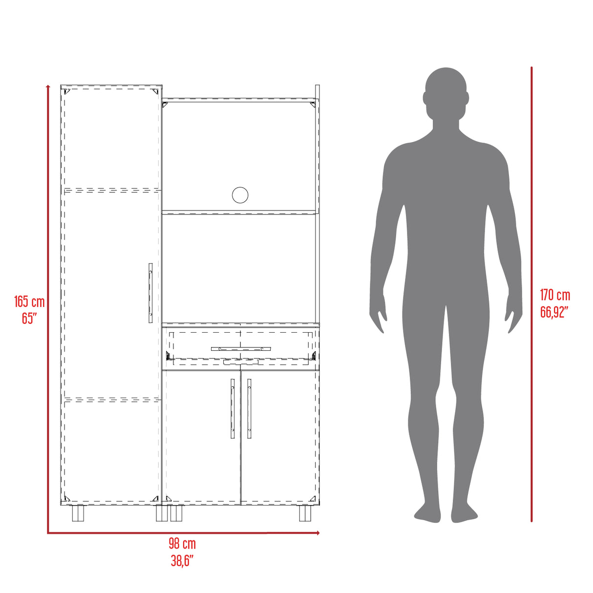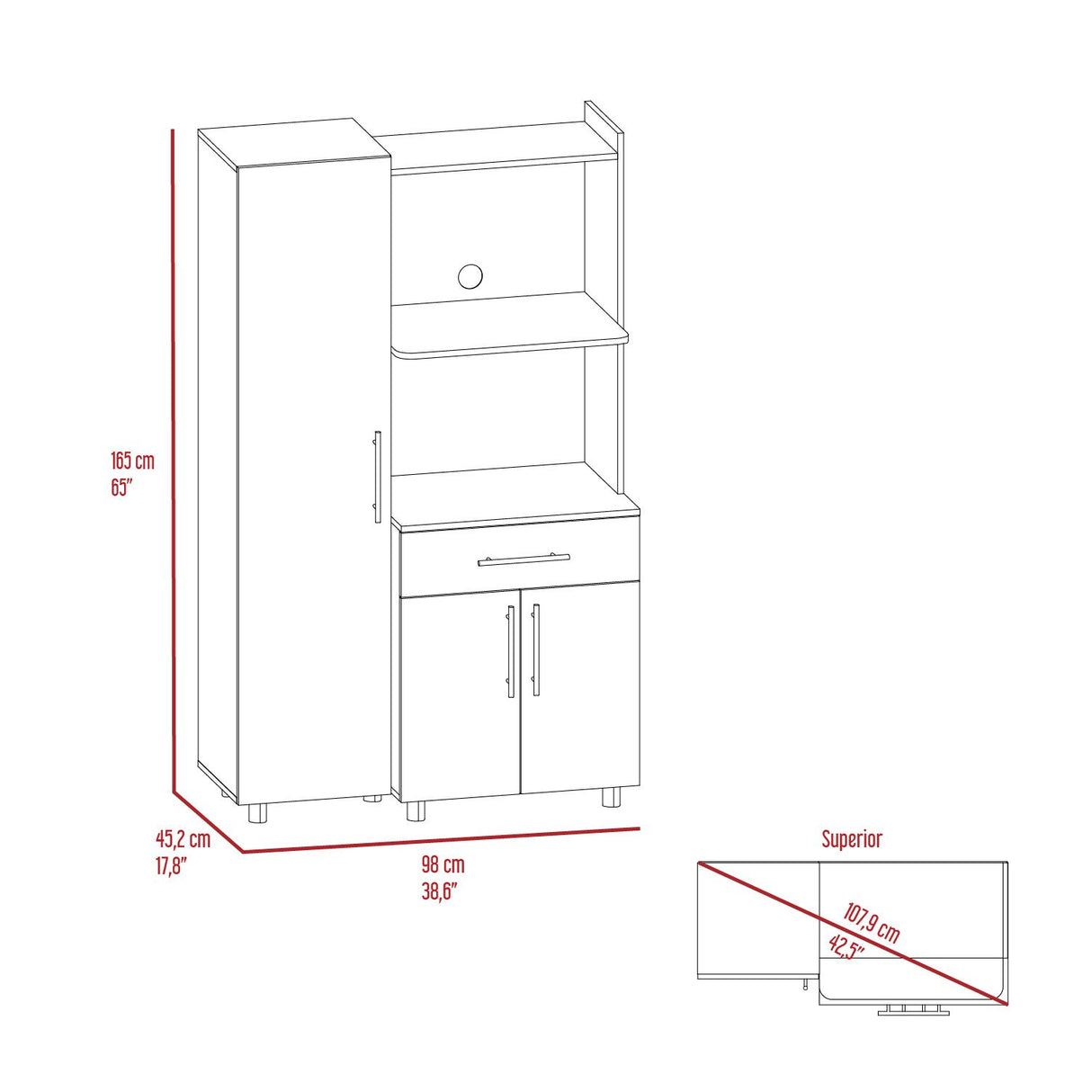 Alacena Pantress Plomo y Blanco 98x165cm Con Tres Puertas