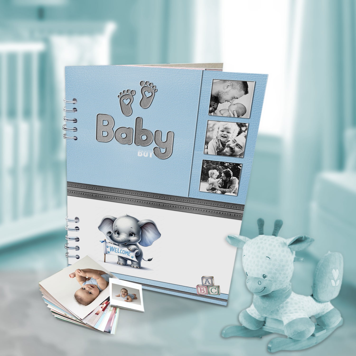 Álbum de Fotos Babyboy Blanco y Azul 24x32cm Argollado de Veinte Páginas