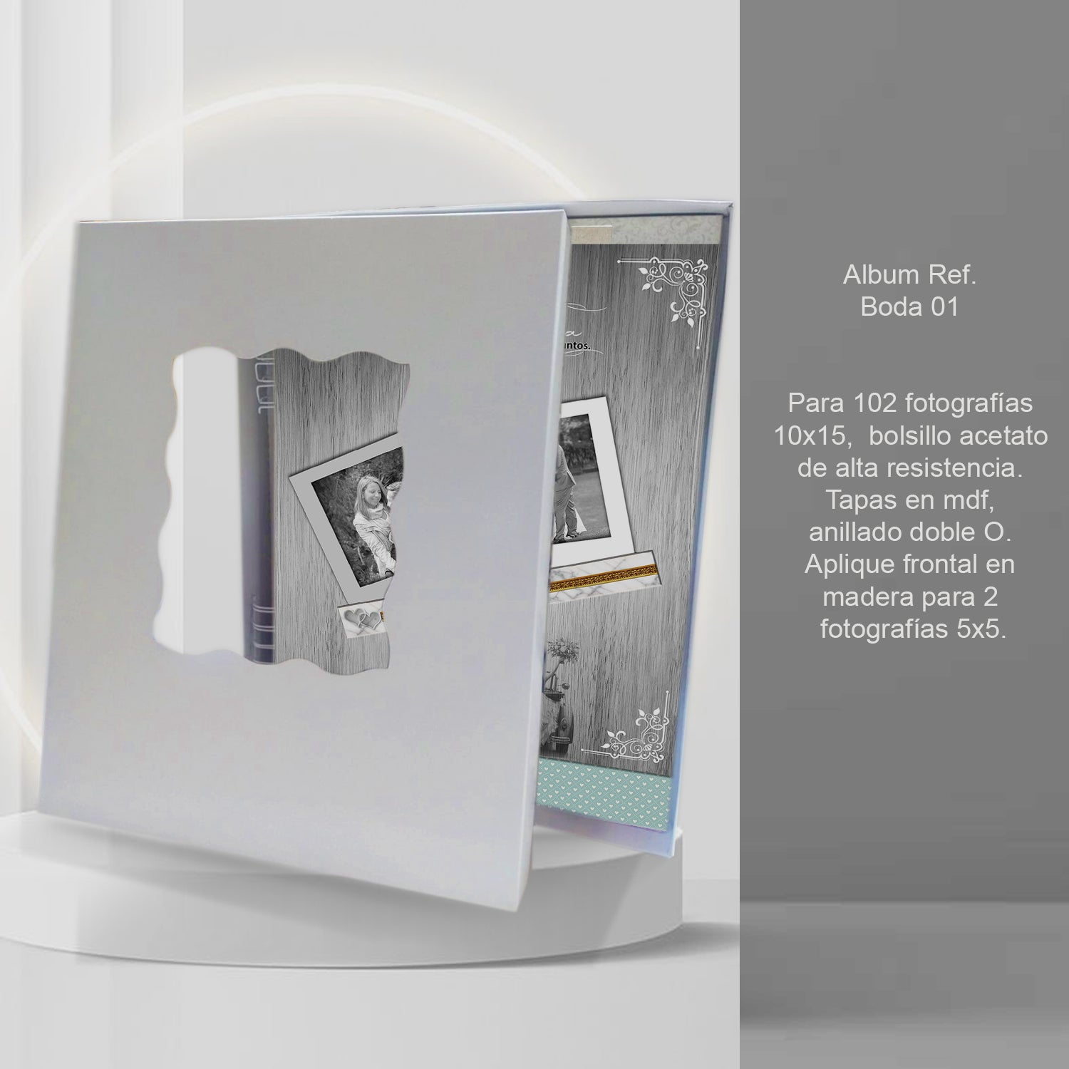 Álbum de Fotos Bodas Blanco y Azul 24x32cm Argollado de Veinte Páginas