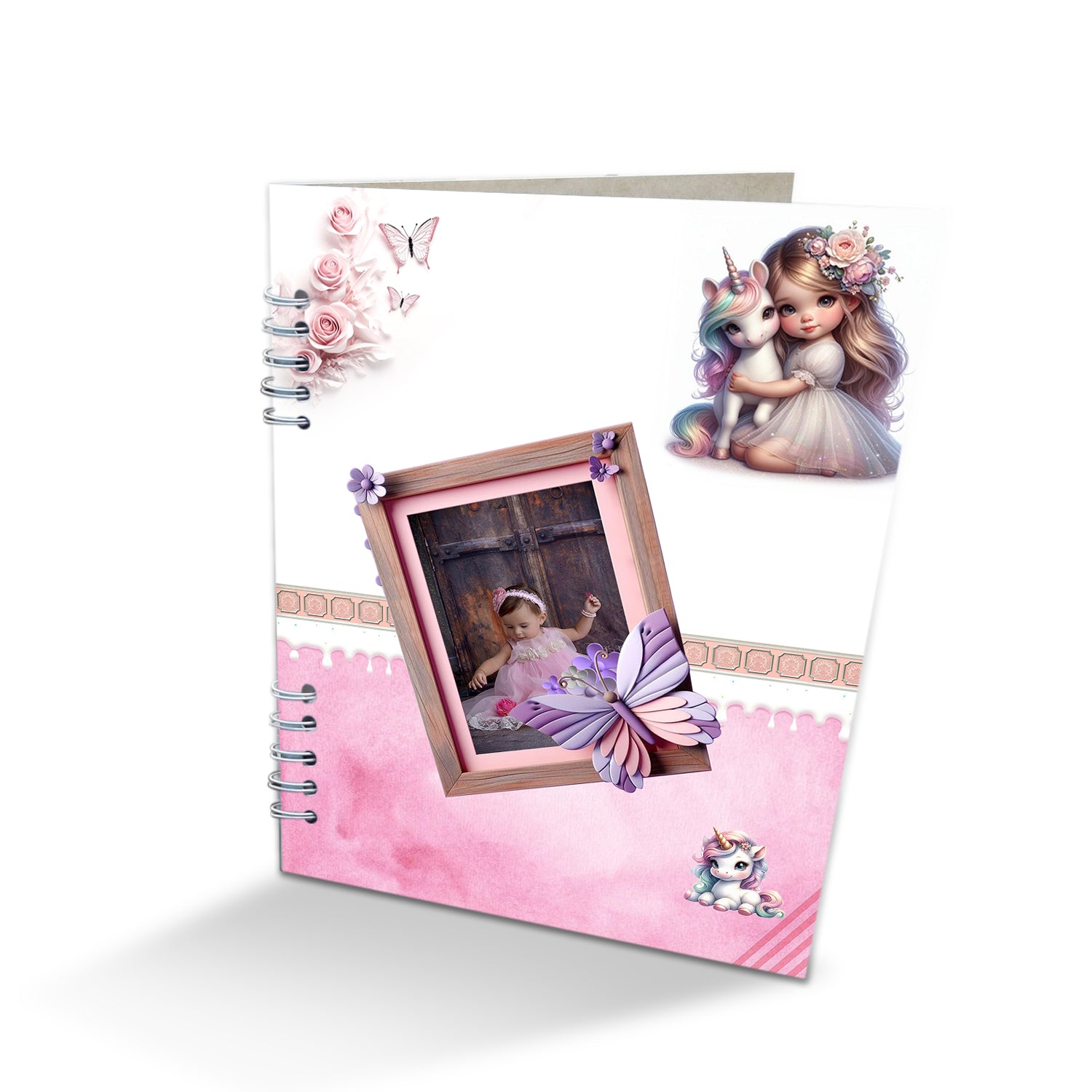 Álbum de Fotos Niña Unicornio Blanco y Rosado 24x32cm Argollado de Veinte Páginas