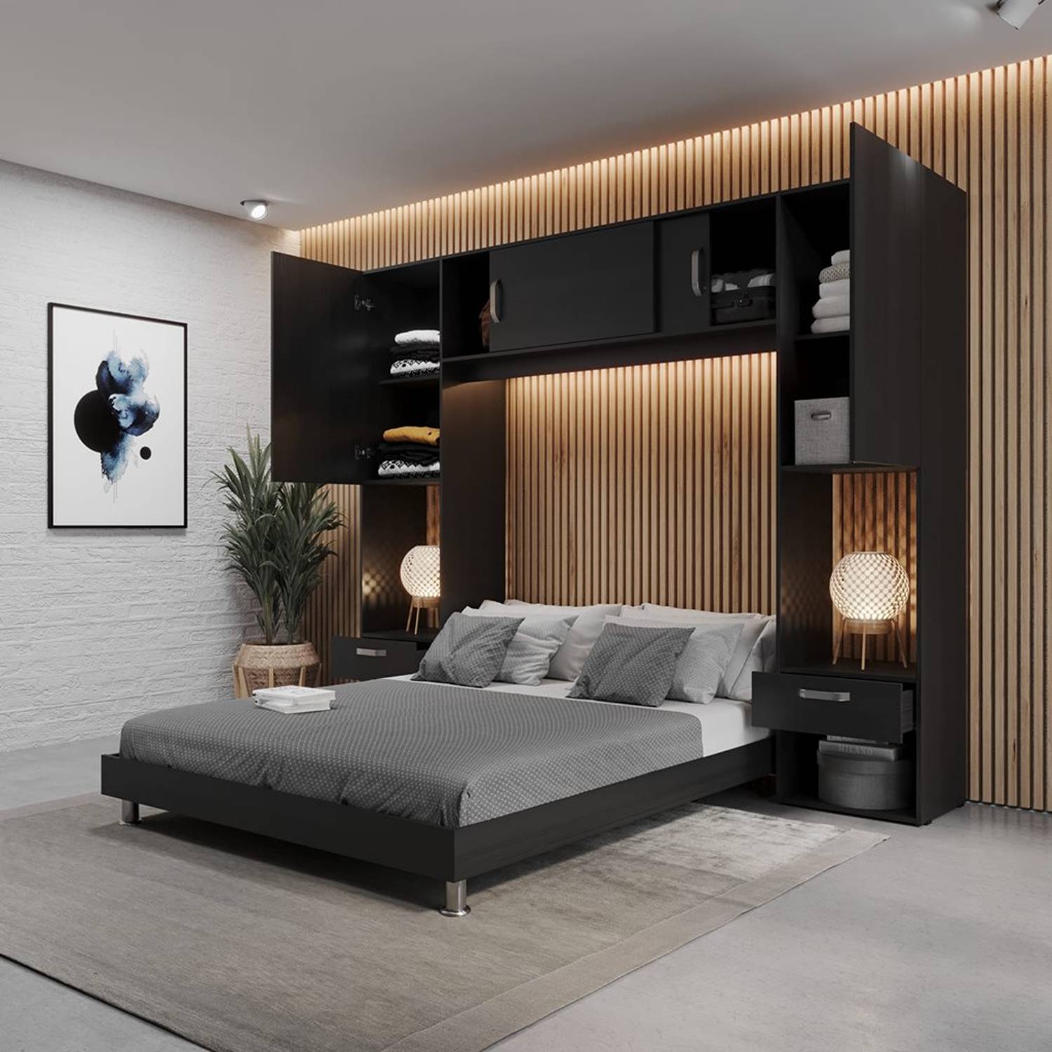 Combo Cama y Mesa de Noche Alcala Wengue 244x200cm para Colchón Doble 140 X 190 Cm
