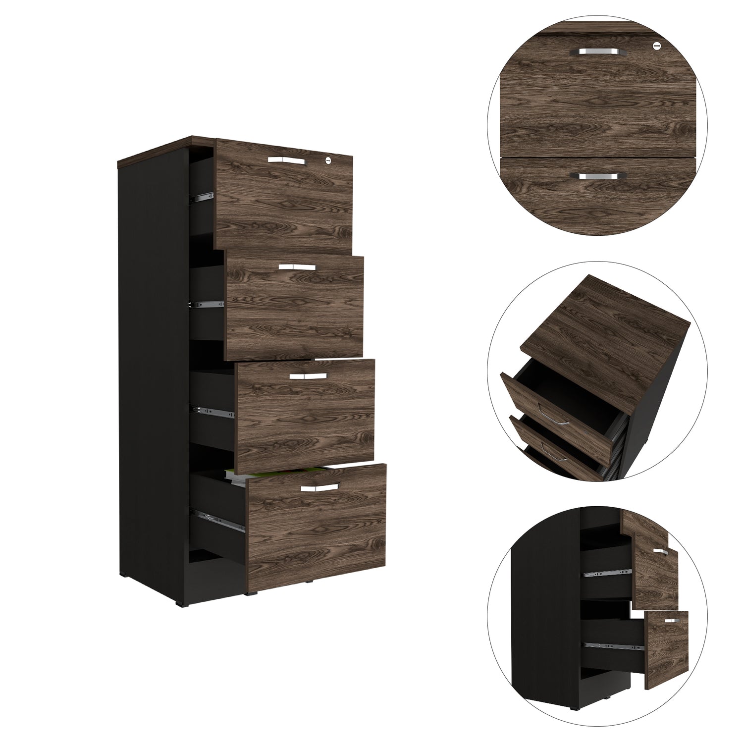 Archivador Home Office Coñac y Wengue 47.5x132.2cm Con Cuatro Cajonres