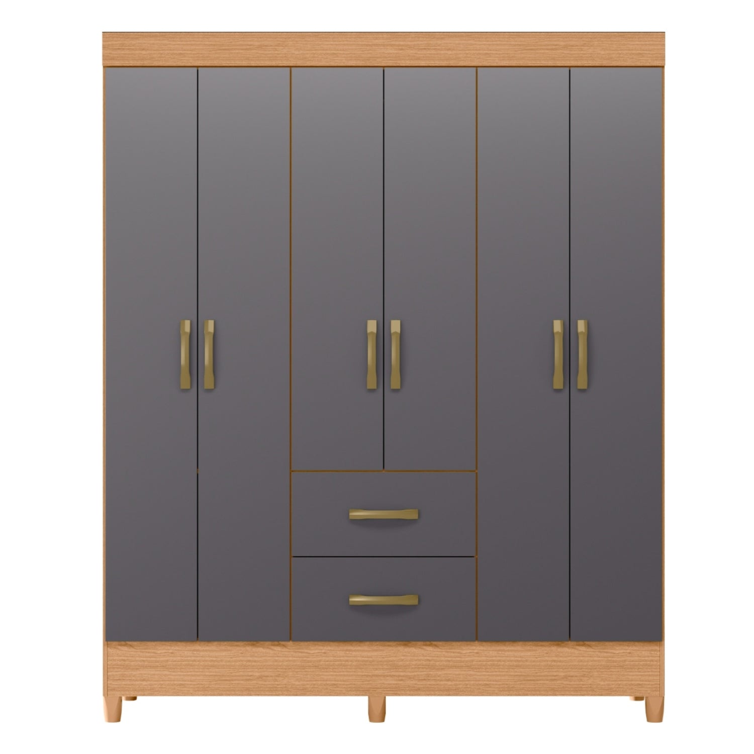 Armario para Ropa Moobi Café y Gris 147x181cm con Dos Cajones y con Seis Puertas