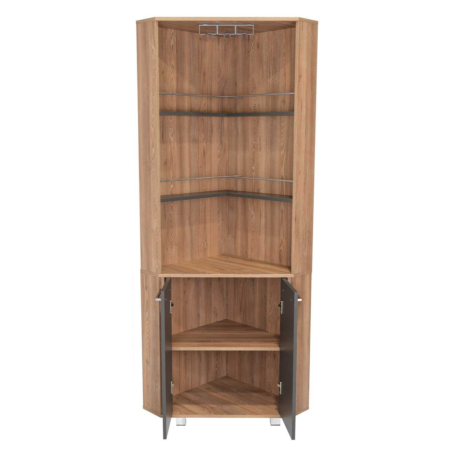 Bar Carmenere Miel y Plomo 56.7x186cm con Tres Compartimientos con Tres Portacopas y sin Portabotellas