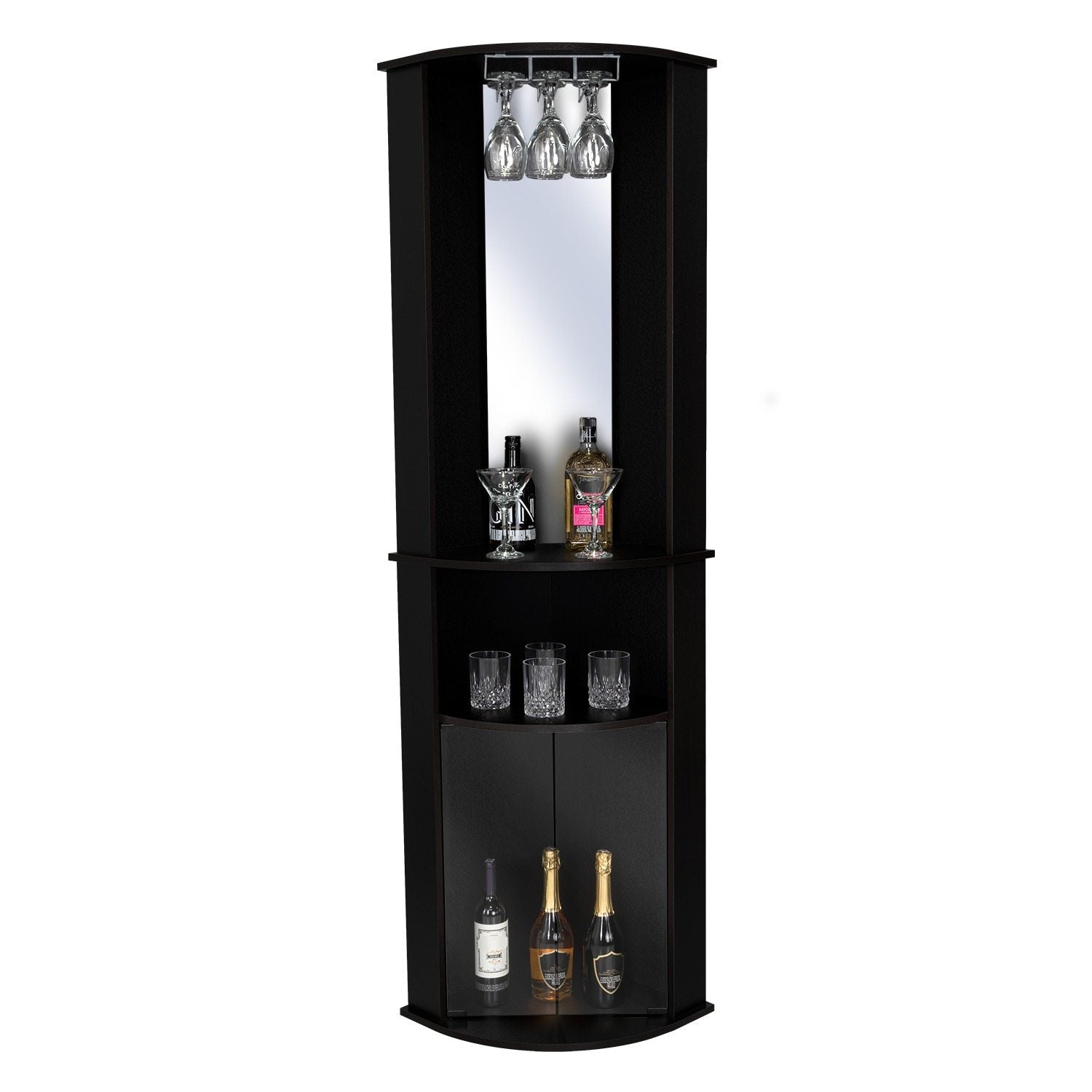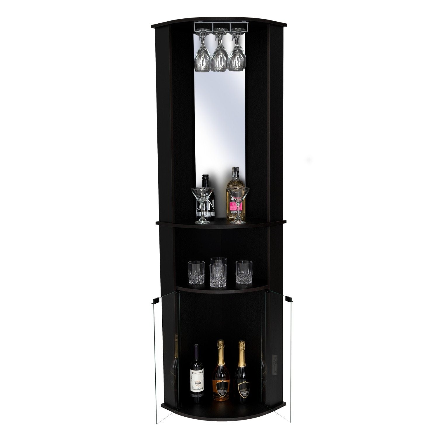 Bar Esquinero Chicago Wengue 190 cm con Colgadero de Copas y Almacenamiento
