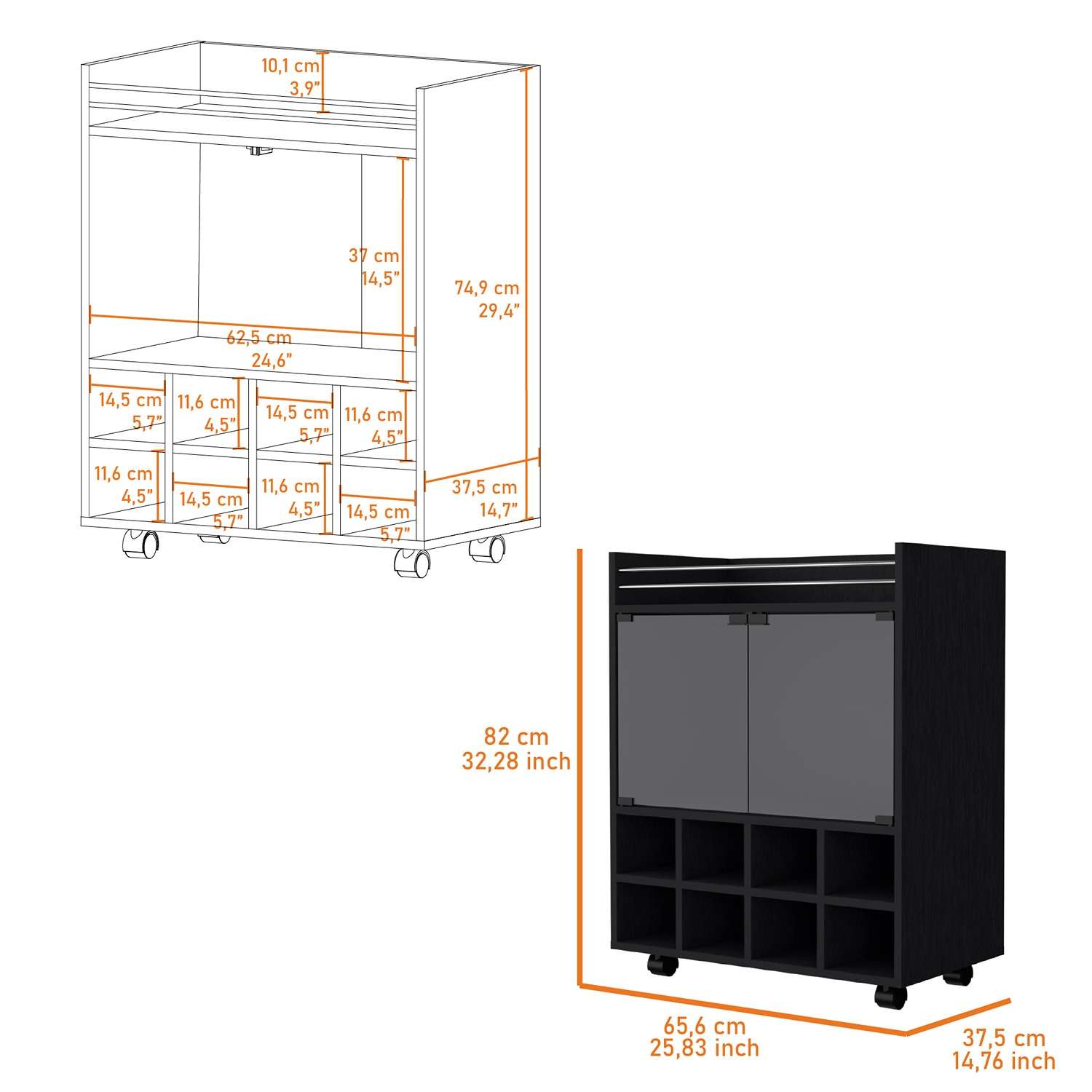 Bar San Andres Wengue 66x82cm con Un Cajón y con Ocho Portabotellas