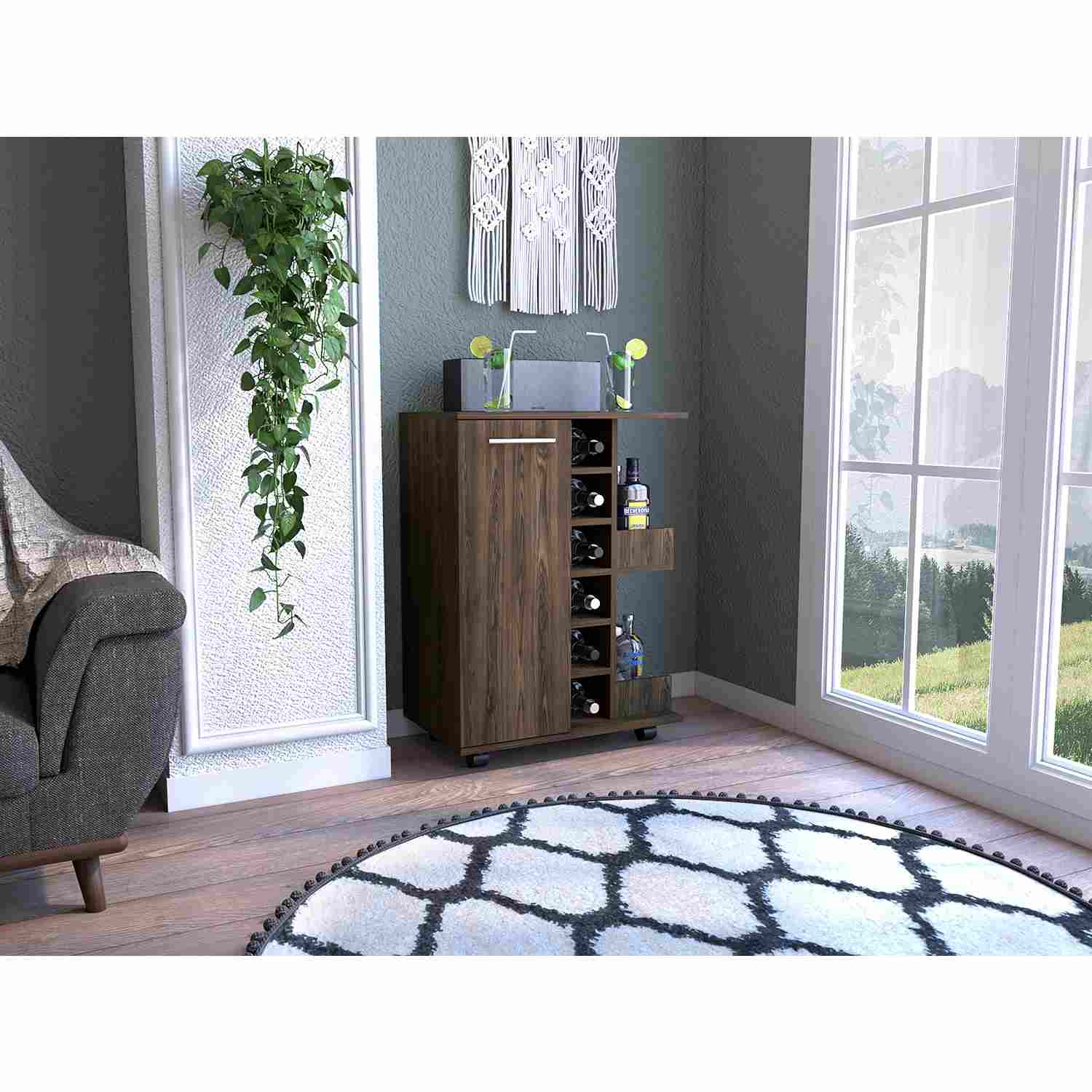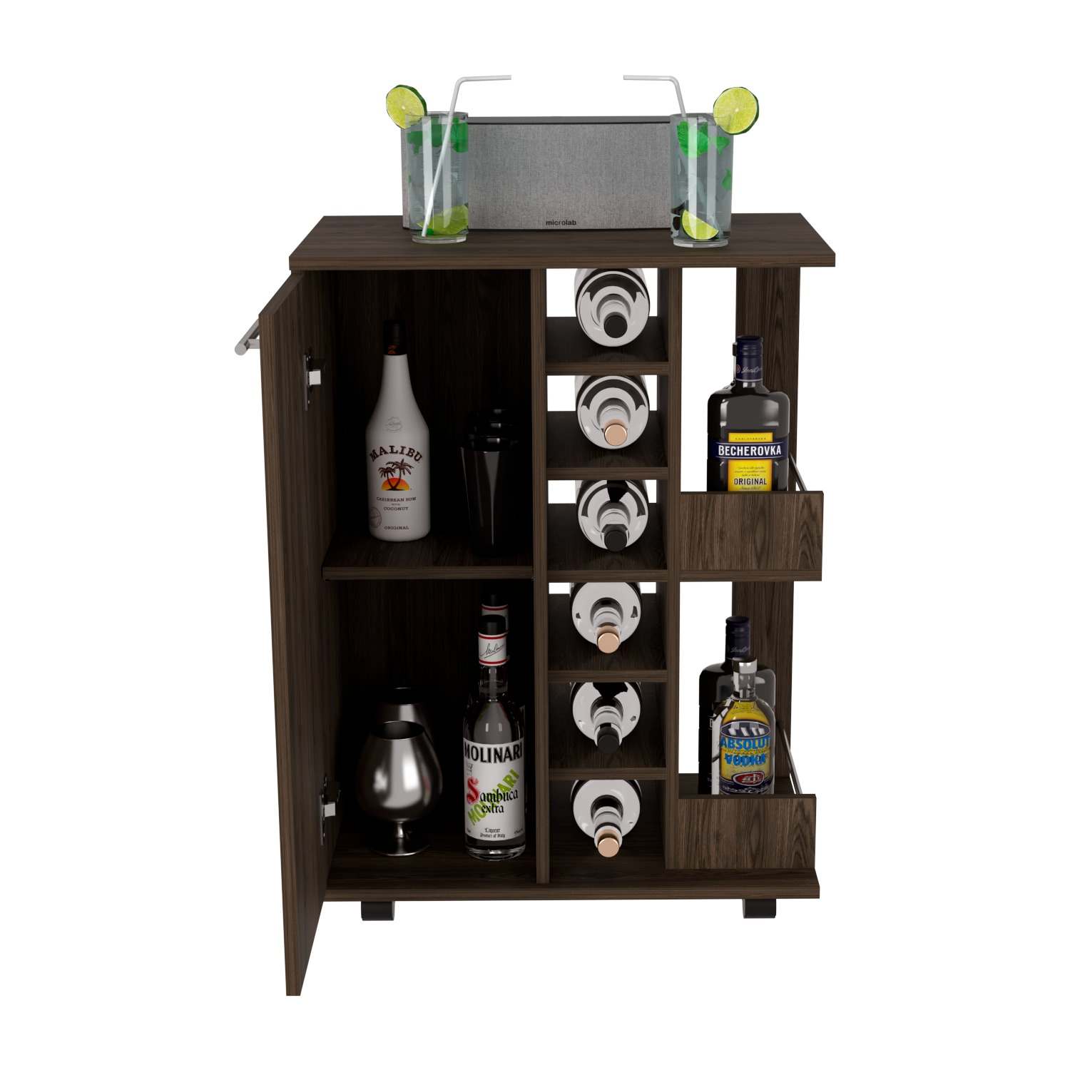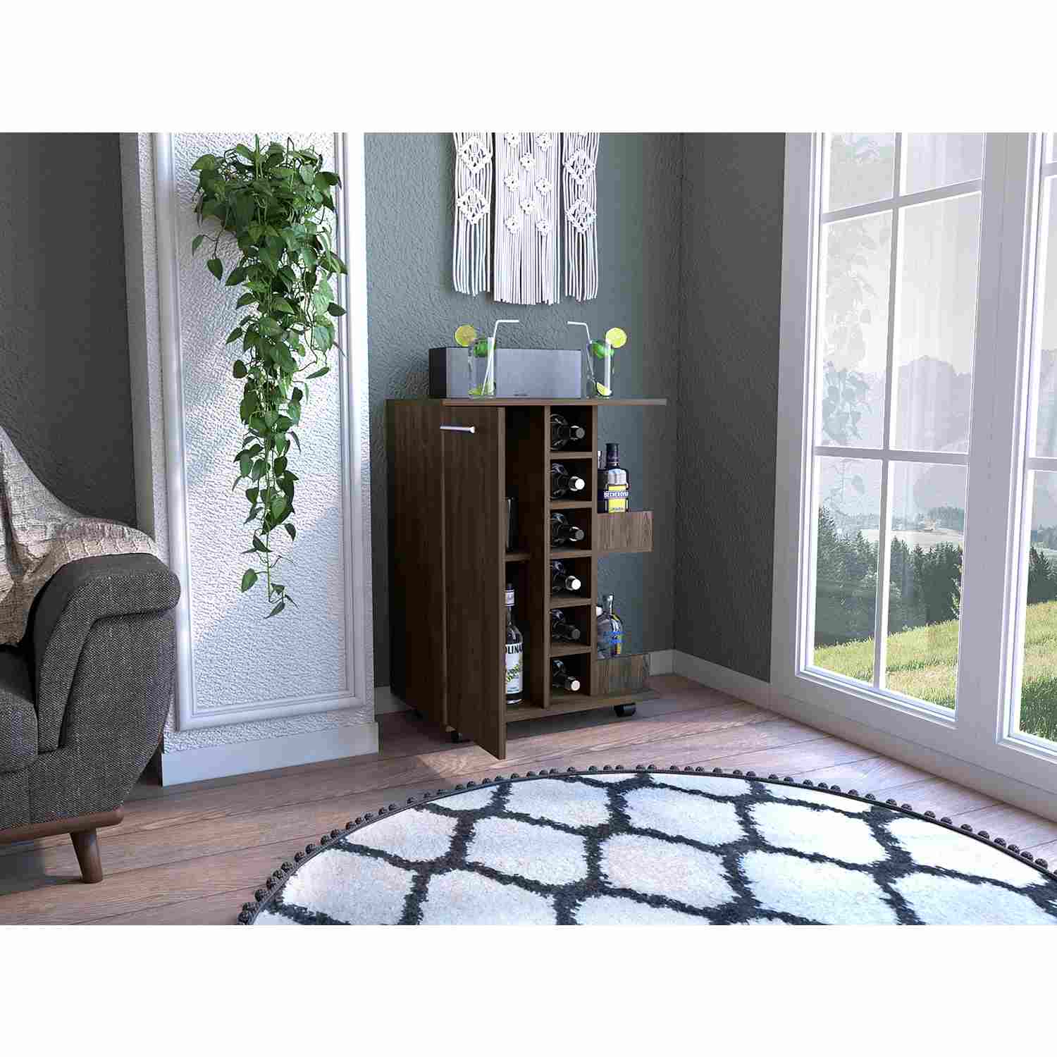 Bar Carro Coñac 60x82cm con Cuatro Compartimientos y con Seis Portabotellas