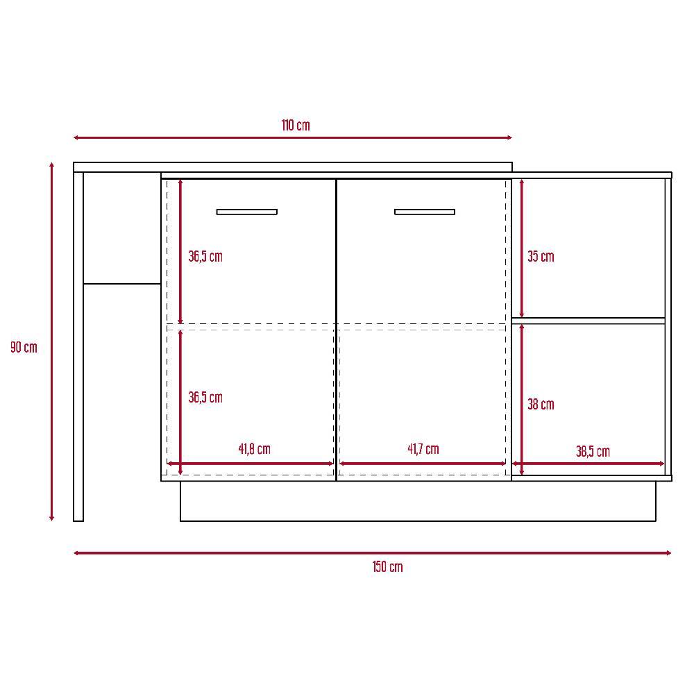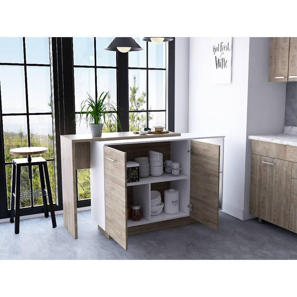 Barra de Cocina Sicilia Miel y Blanco 150 cm con Dos Puertas