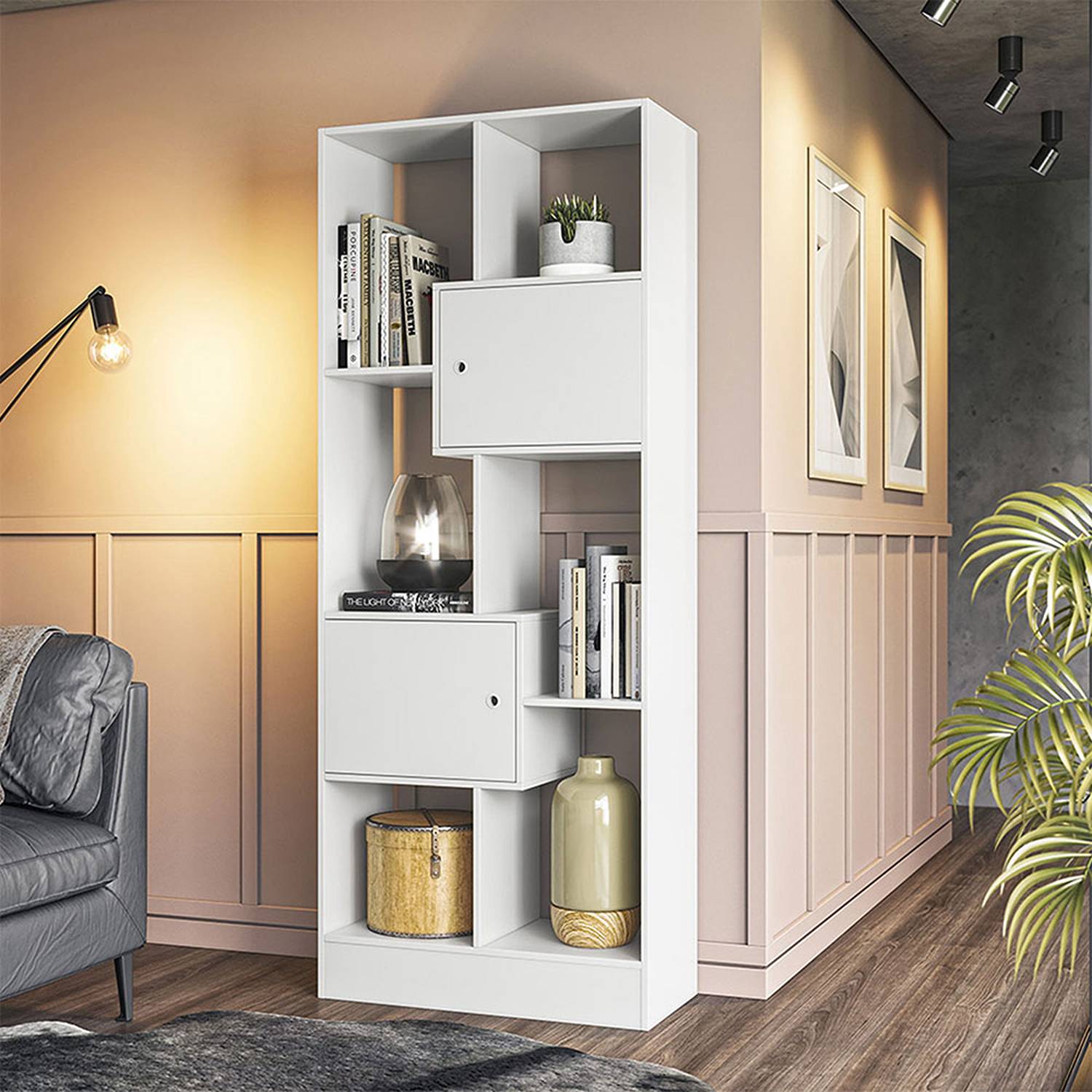 Biblioteca Arica Blanco 73x183cm con Seis Compartimientos y con Dos Cajones