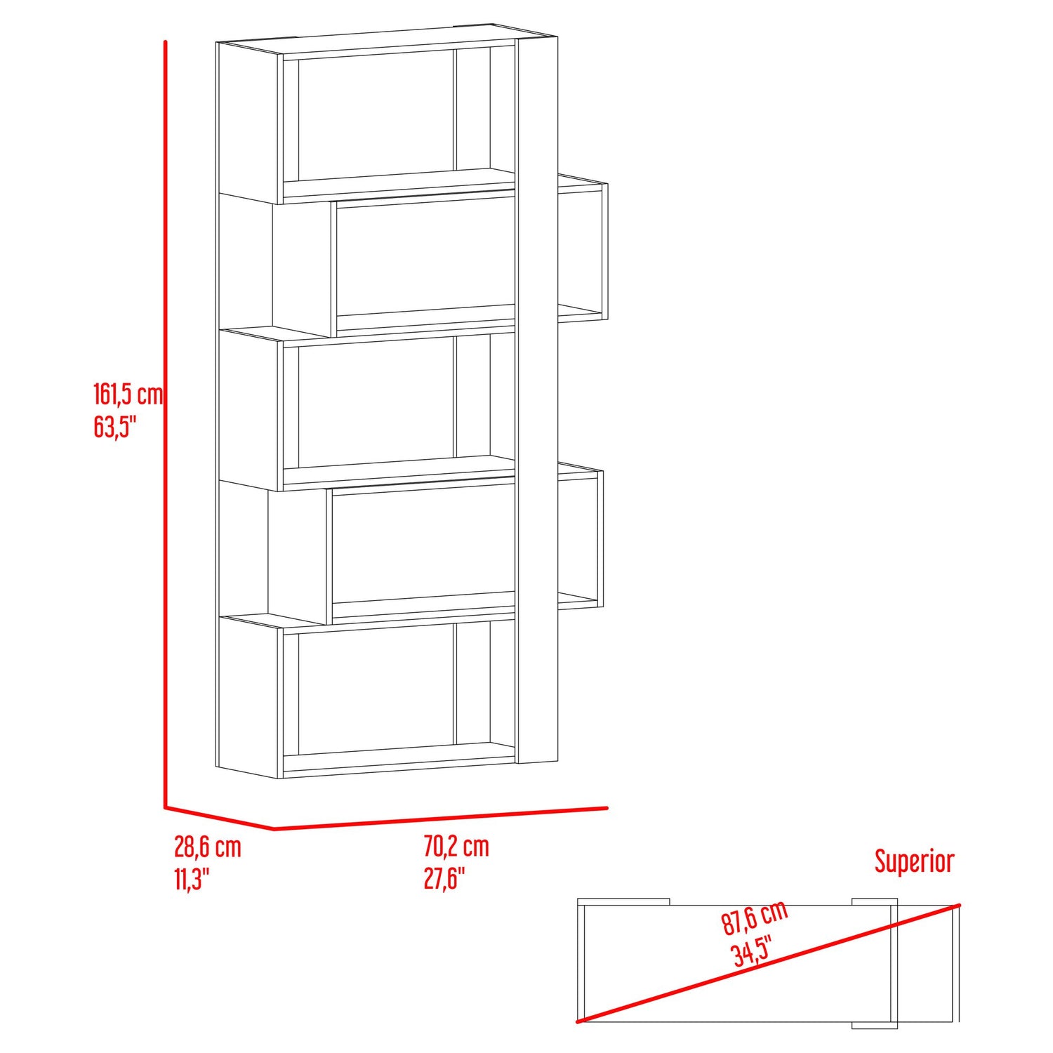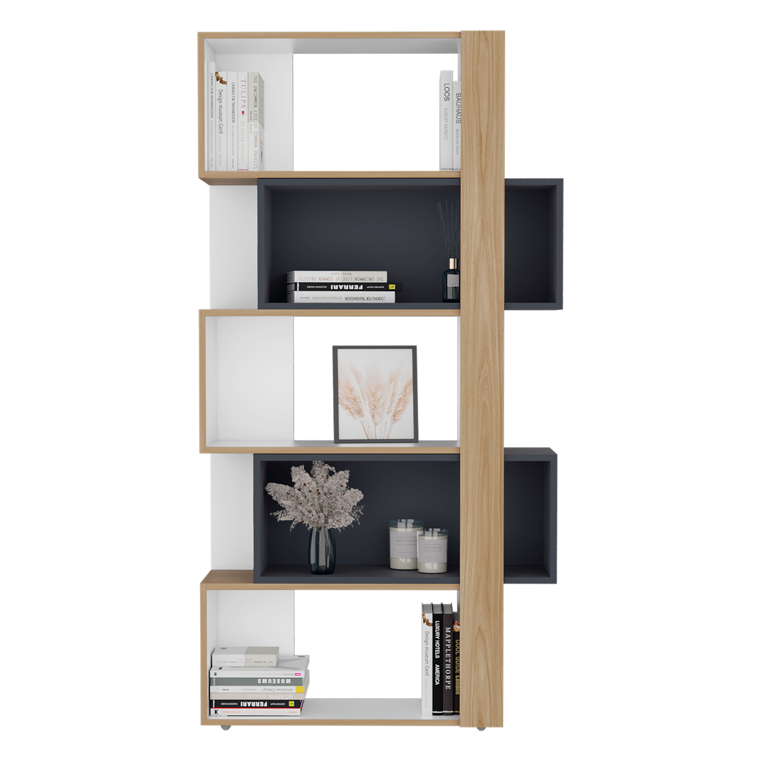 Biblioteca Beijing Fresno y Blanco 70.2x161.5cm Rectangular con Cinco Compartimientos