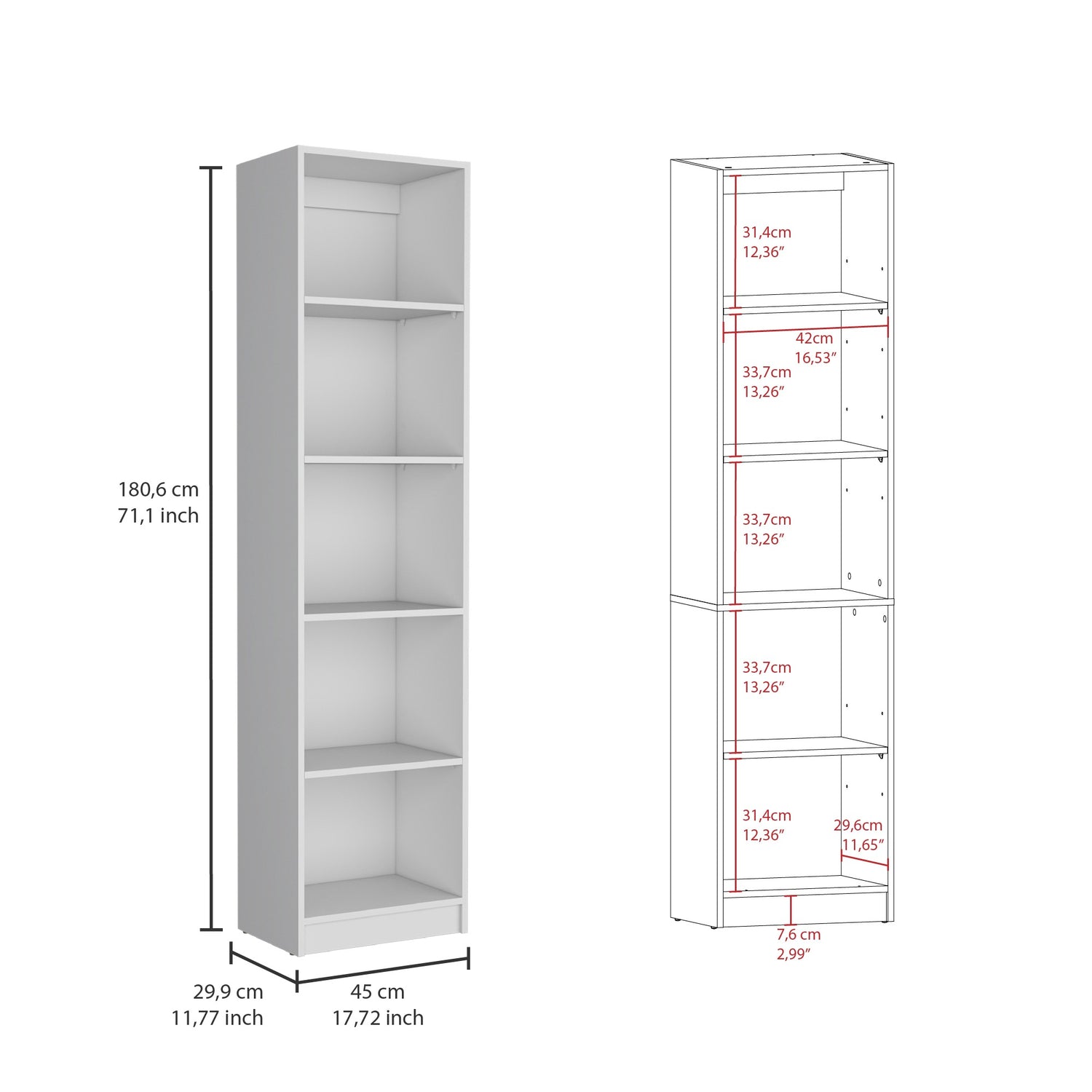 Biblioteca Lib Home XS Blanca 45x180.6cm con Cuatro Entrepaños