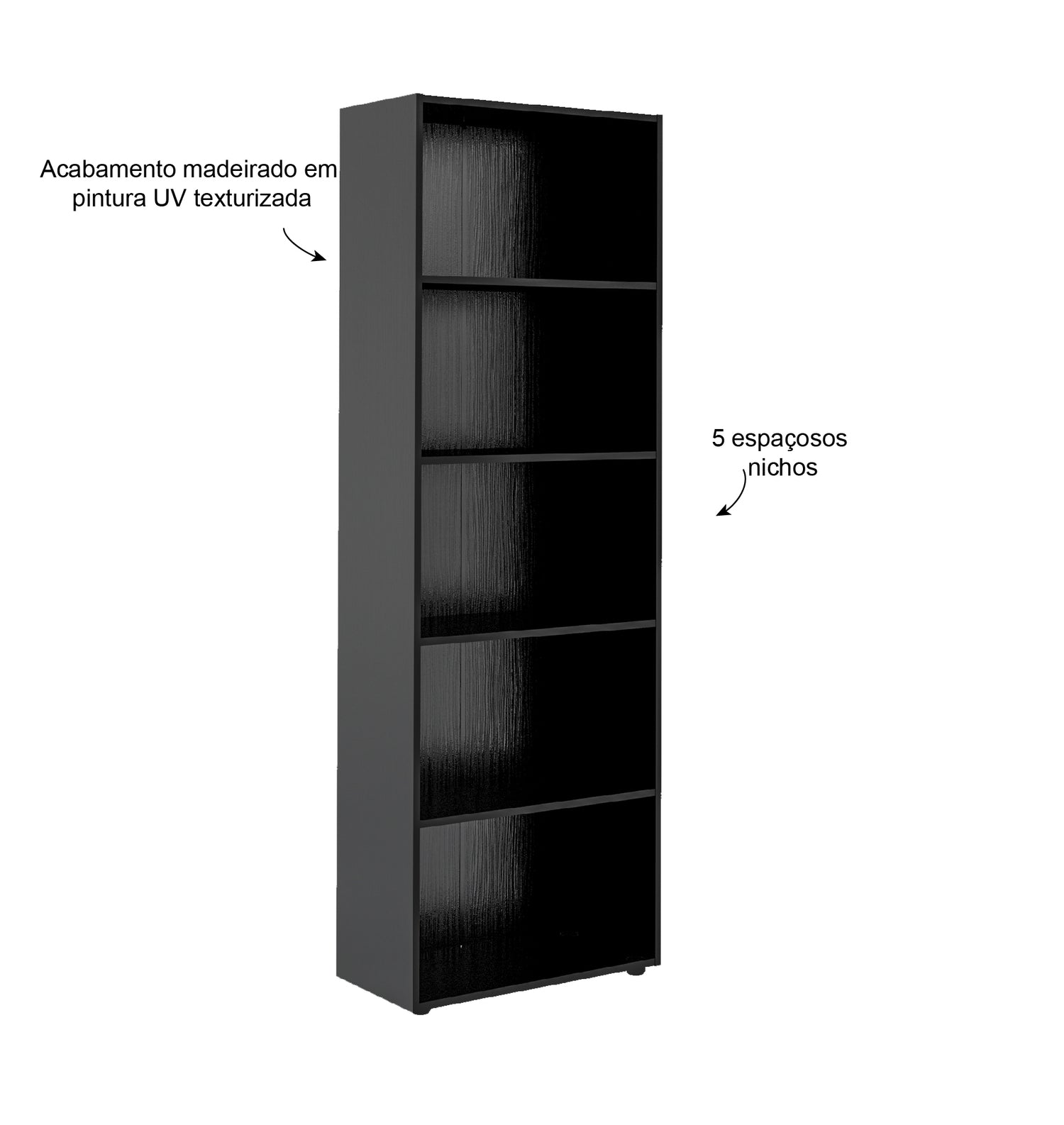Biblioteca Multy Negro 60x180cm Rectangular con 4 Entrepaños