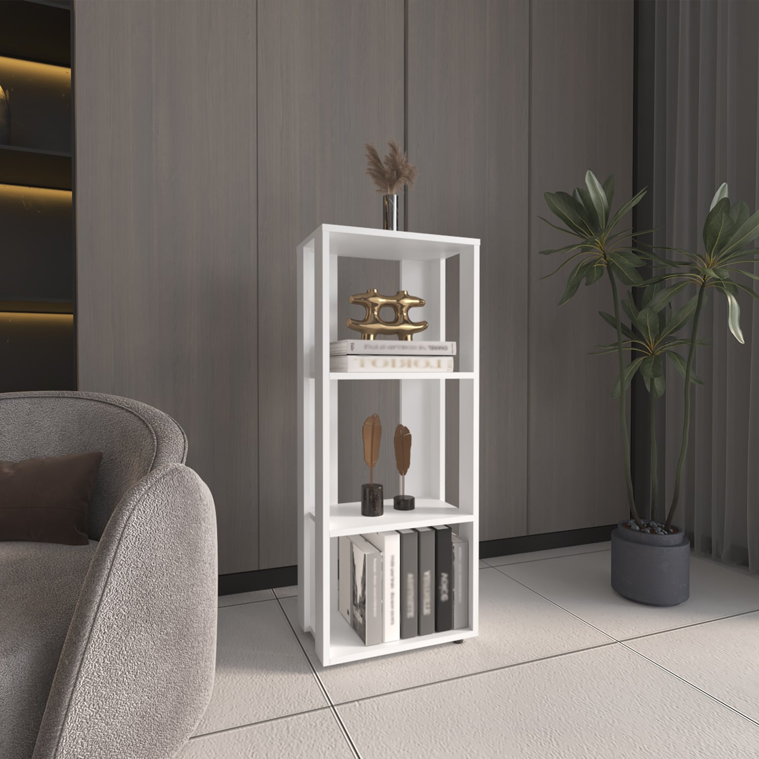 Biblioteca Office Blanco 40x100cm Rectangular Con Tres Compartimientos