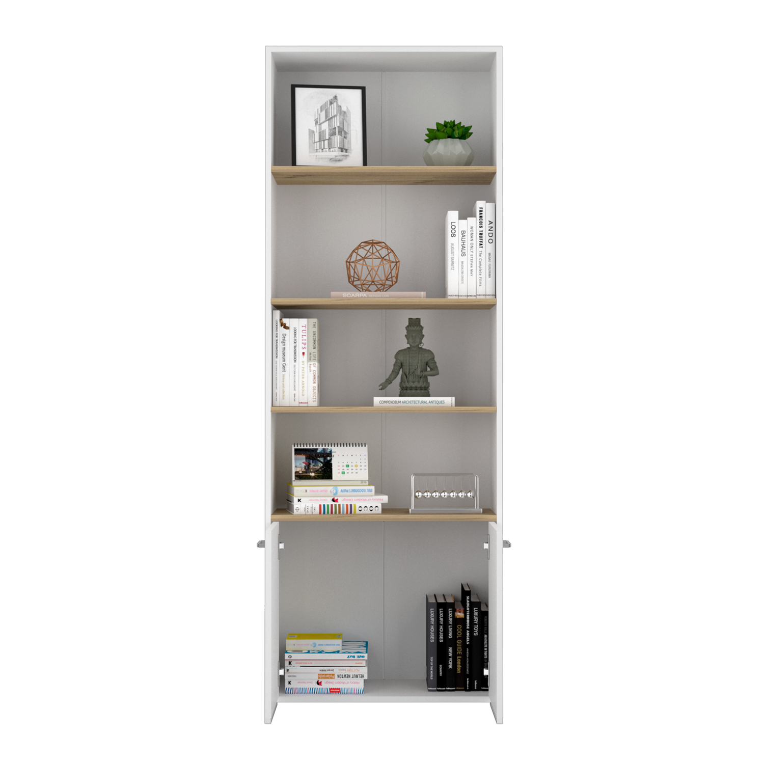 Biblioteca Rectangular Z63 Blanco y Duna 63x180.6cm con Cinco Compartimientos y Dos Puertas