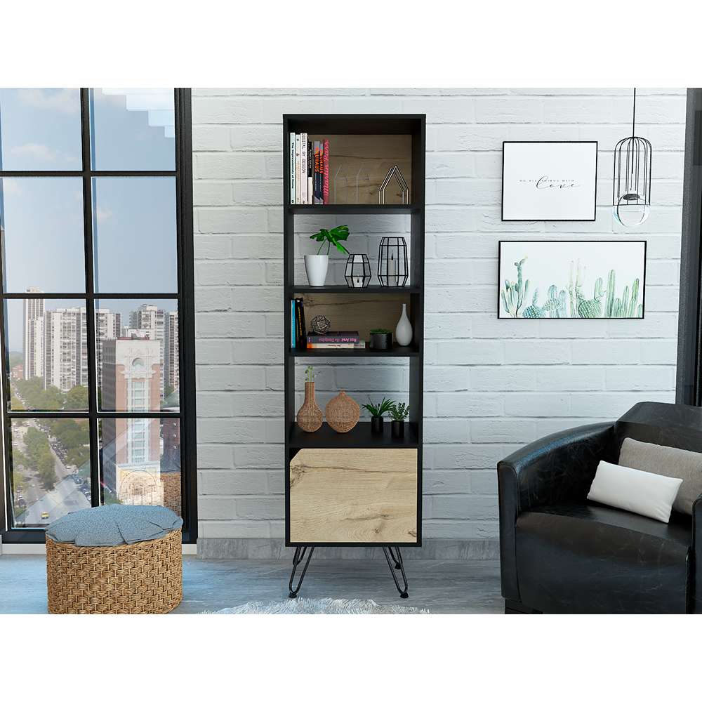 Biblioteca Stamford Wengue 48.3x170cm con Cuatro Compartimientos y con Un Cajón