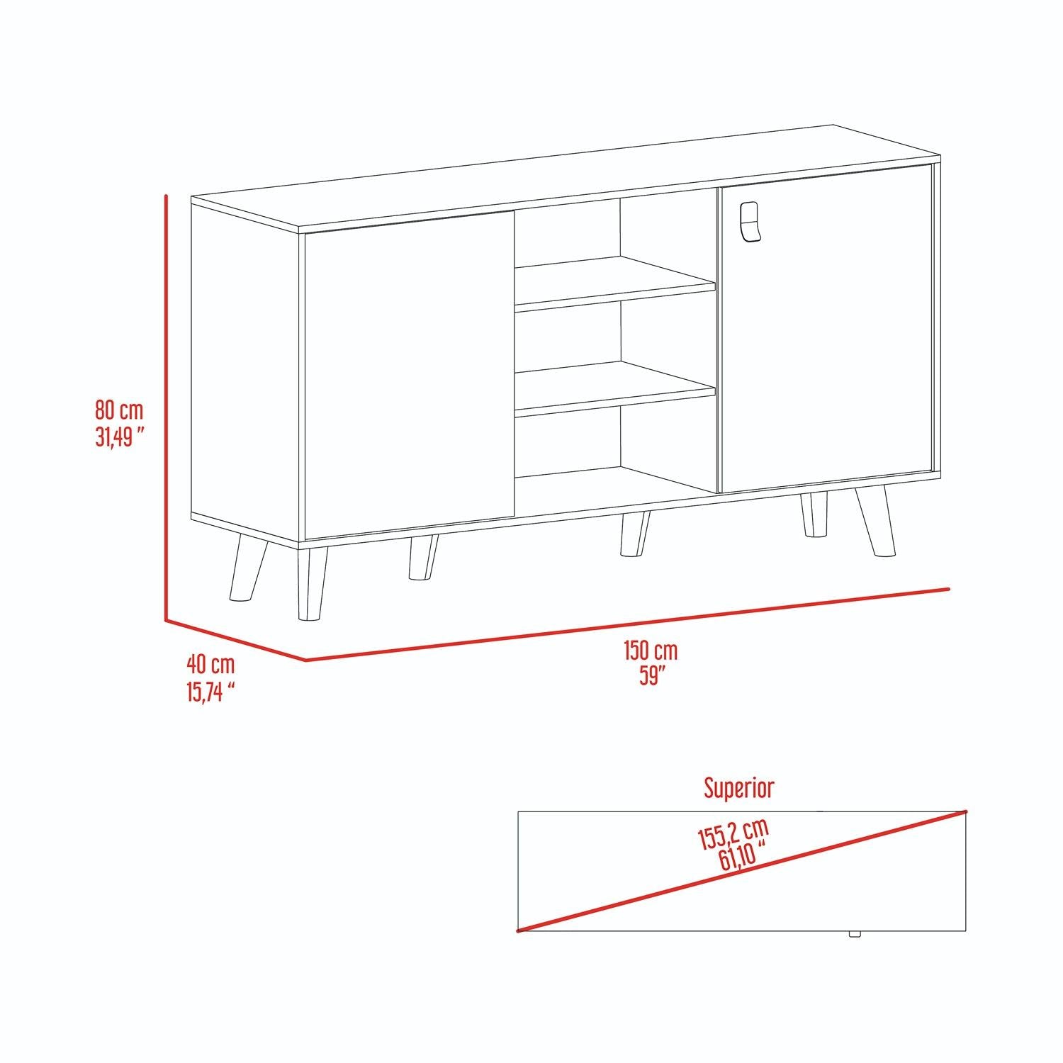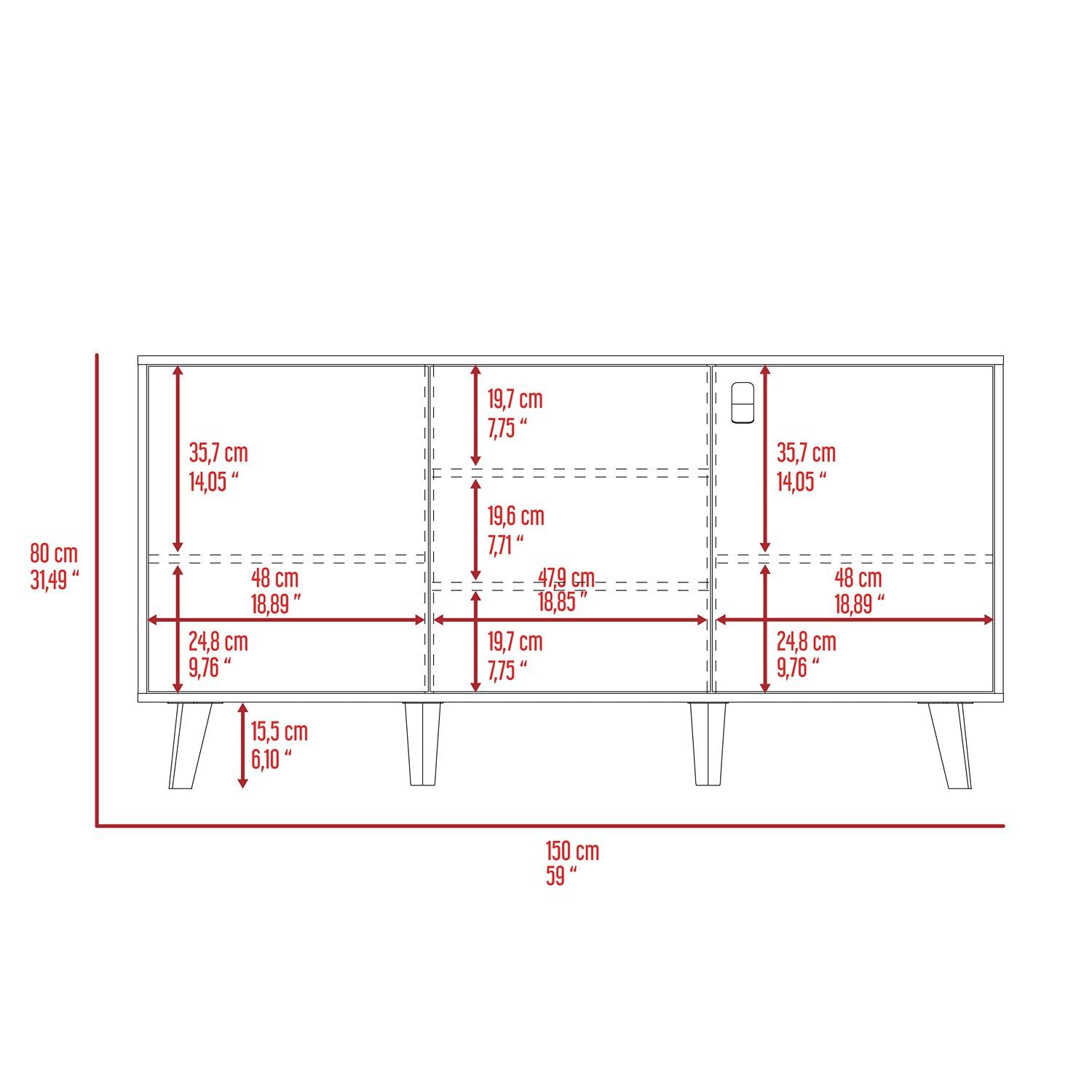 Ancho: 150 cm, Alto: 80 cm, Profundo: 40 cm.