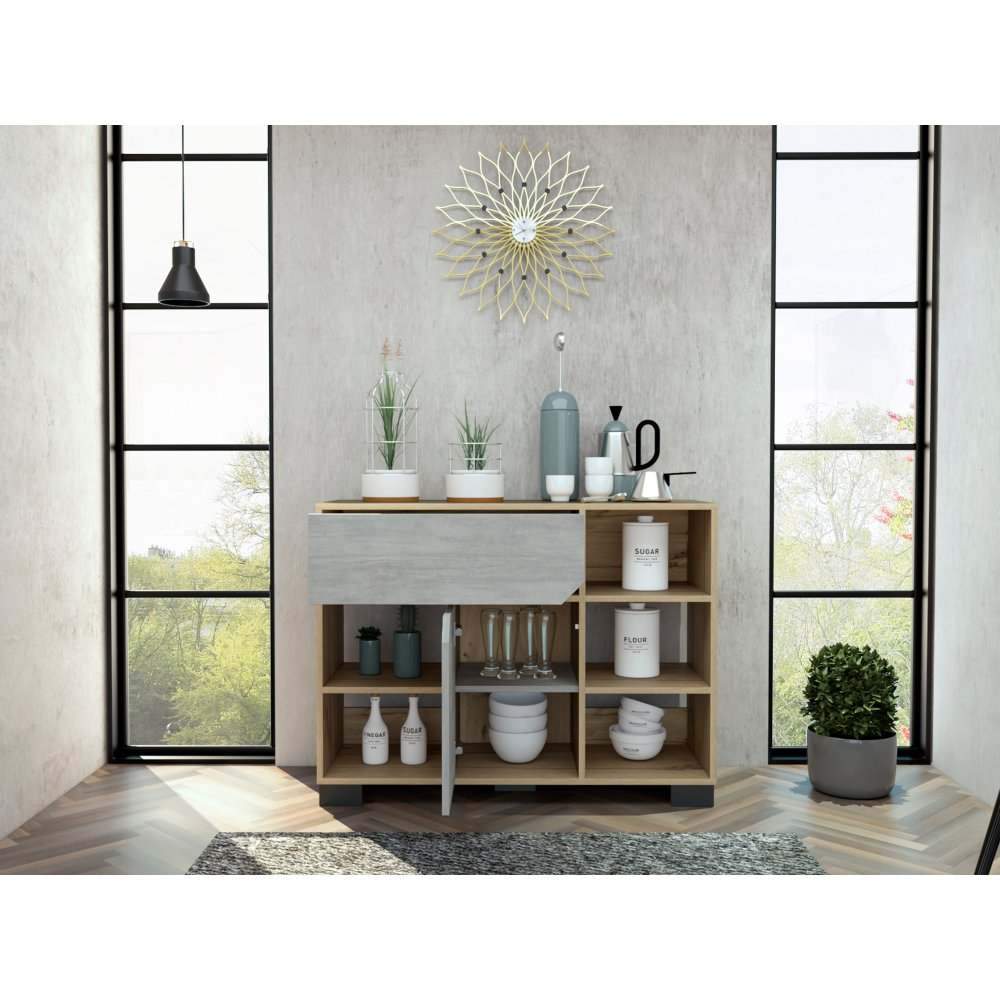 La modernidad del diseño se confabula con el espacio donde quieras ubicar el bifé Loira en acabados duna y cemento en tu casa o apartamento. Sus cajones con extensión total y su puerta batiente de apertura sin manija, lo hacen altamente funcional, sumado a sus múltiples entrepaños para que todos tus objetos luzcan como merecen.