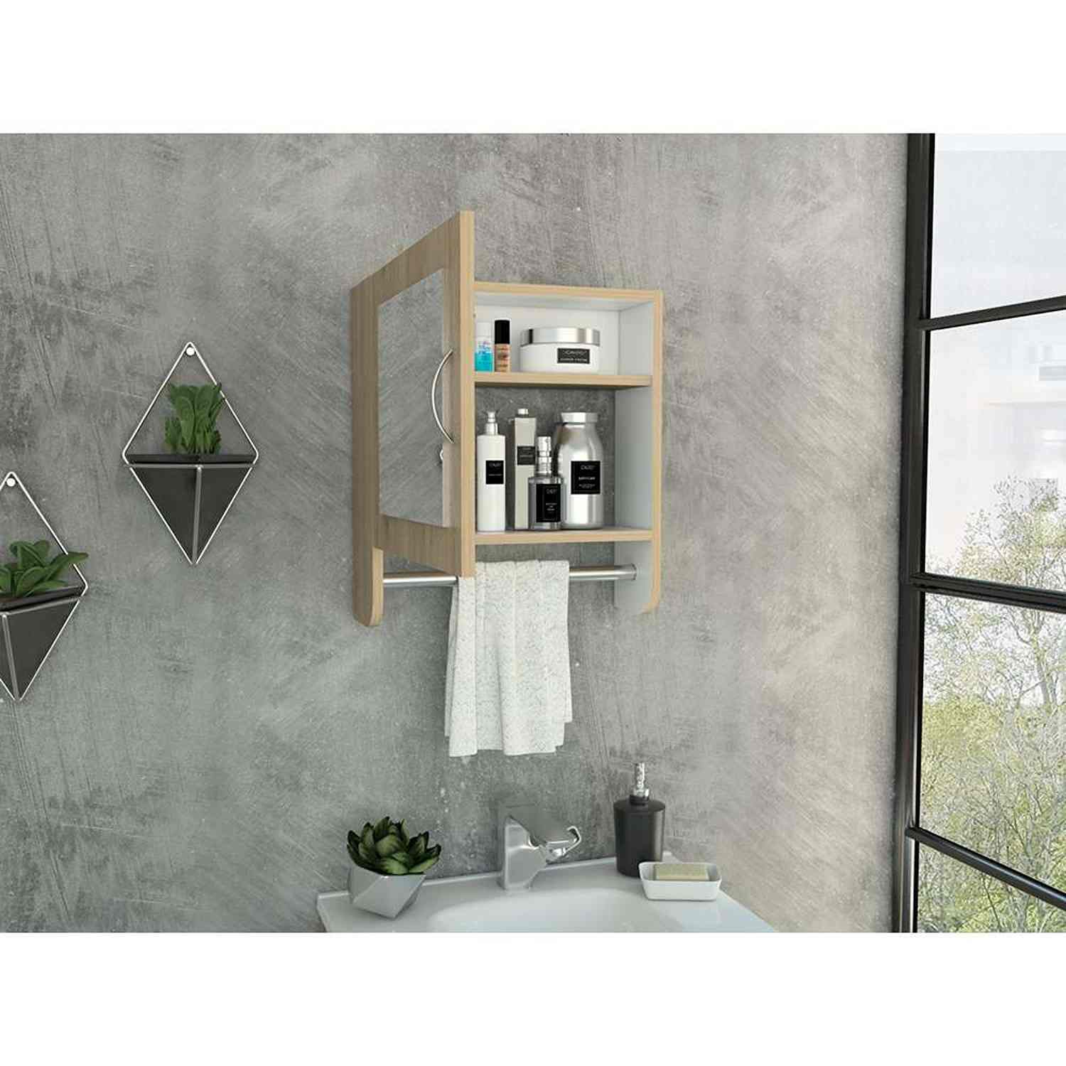 Gabinete de Baño Bath 300 Rovere 45x50cm Cuadrado con Espejo y con Dos Entrepaños