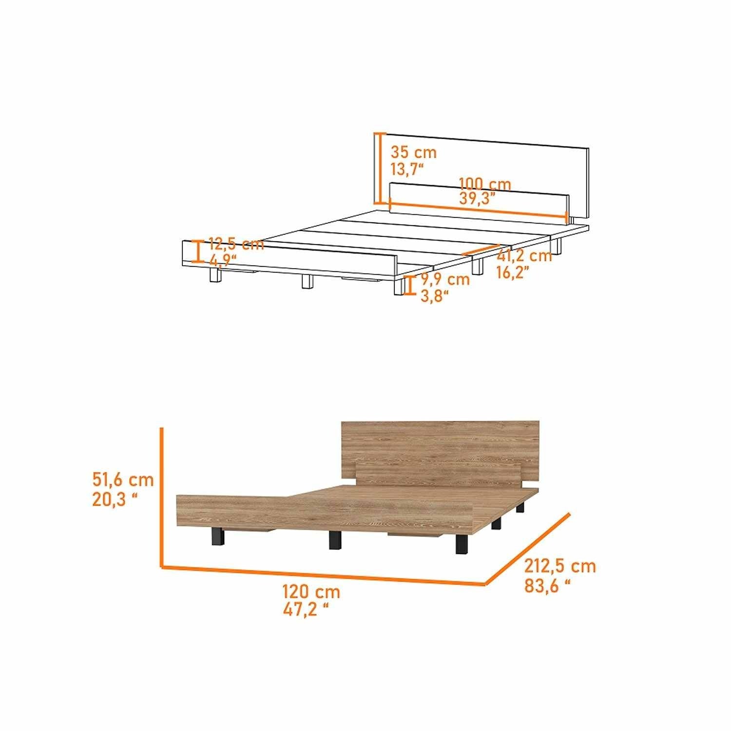 Cama Kaia Miel 120x52cm para Colchón Sencillo 100 X 190 Cm con Cabecero