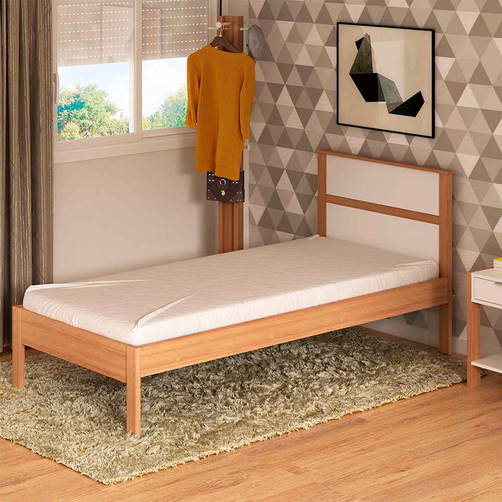 Cama Viena Almendra y Blanco 96.7x92cm para Colchón Sencillo sin Colchón y con Cabecero