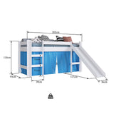Incluye: - Una (1) escalera - Un (1) rodadero - Una (1) cortina azul - Kit de herrajes - Manual de armado