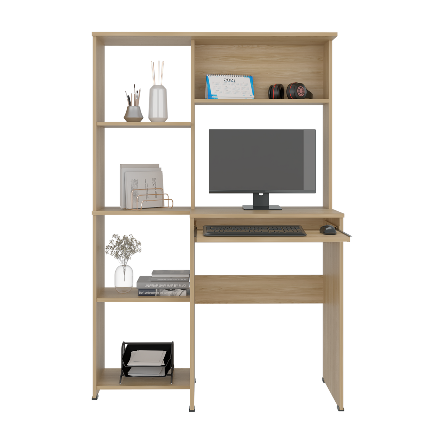 Centro de Computo Alden Eco Fresno Europeo 100x150cm sin Cajones y con Organizador de Libros