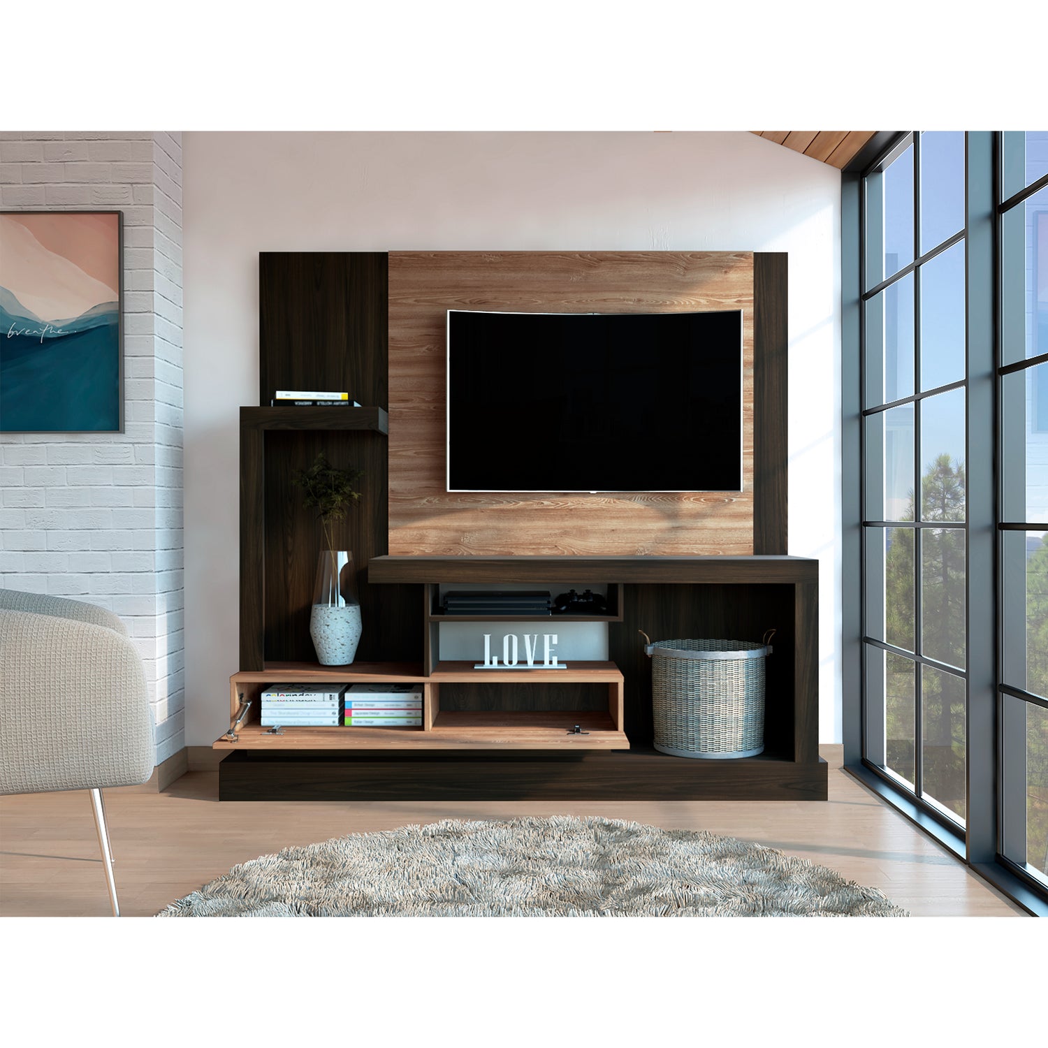 Centro de Entretenimiento Alcaceres Habano y Miel 180x172.2cm para TV Hasta 55 Pulgadas con Ranuras para Cables y con Tres Compartimientos