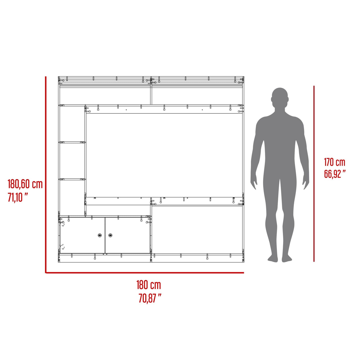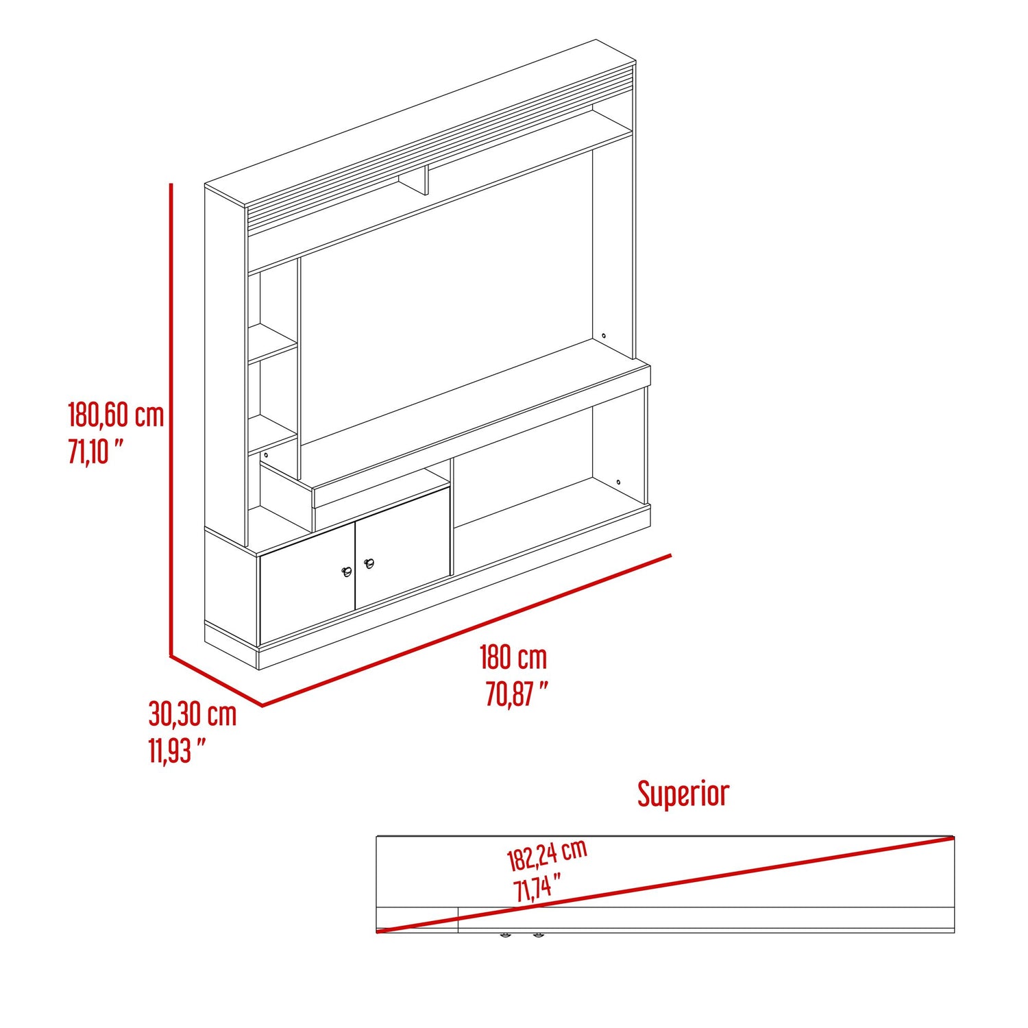 Centro de Entretenimiento Blaine Capri y Fresno Europeo 180x180.6cm para TV Hasta 70 Pulgadas sin Cajones
