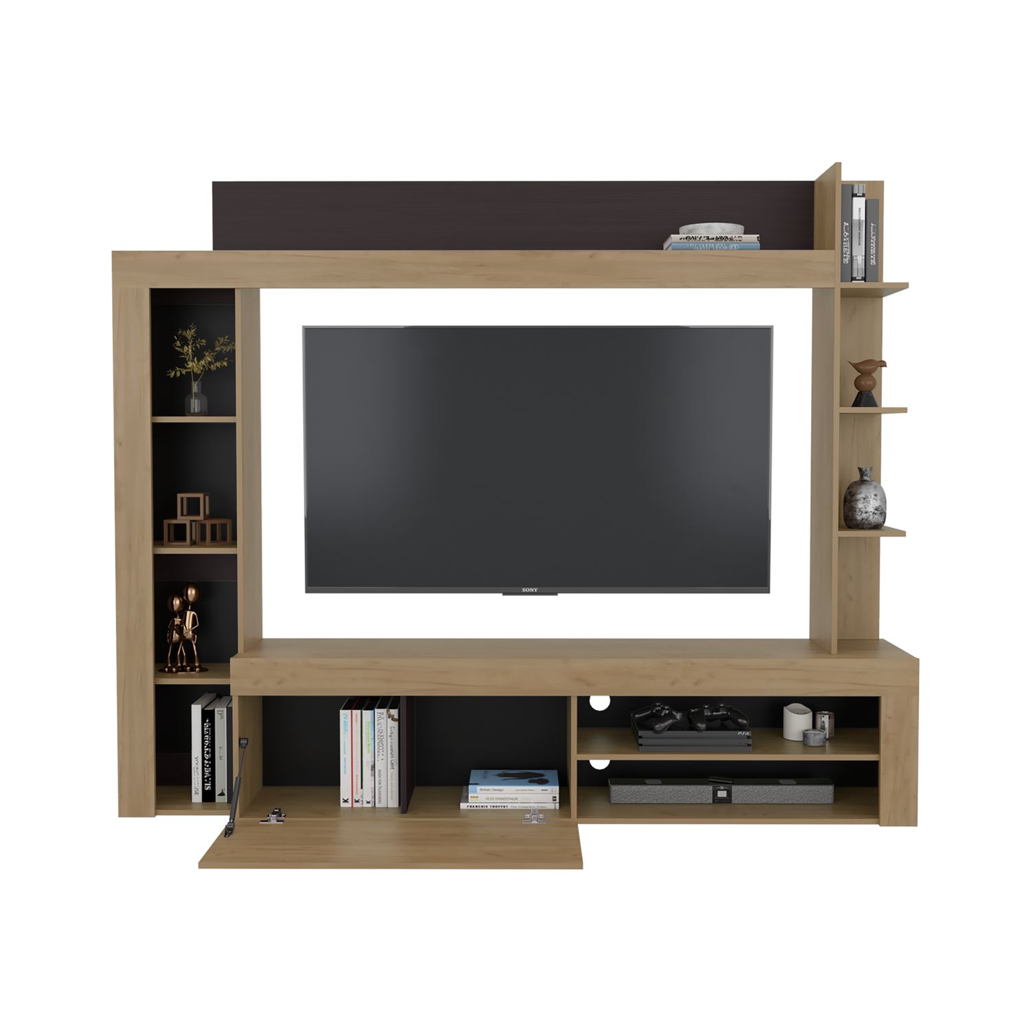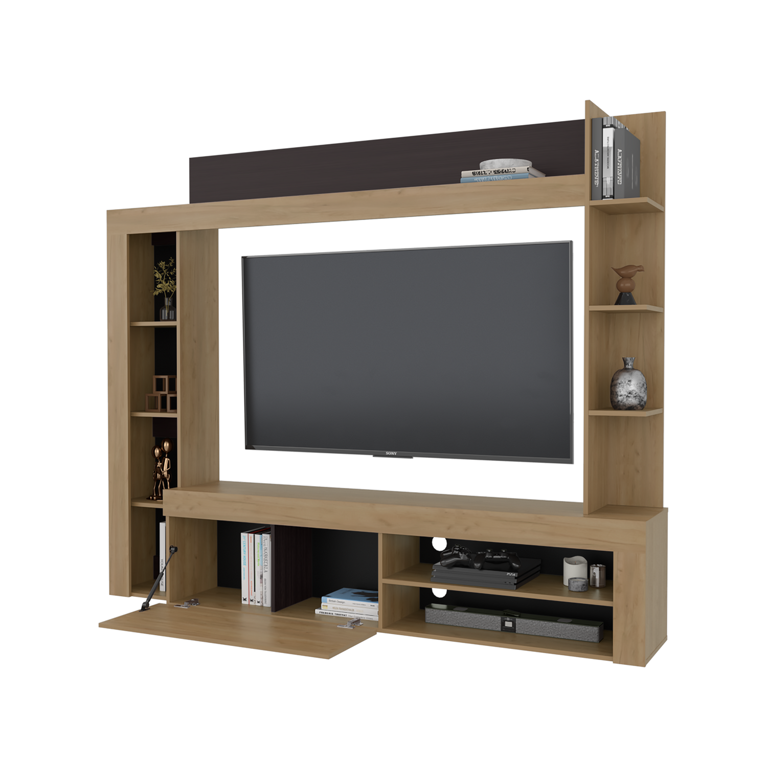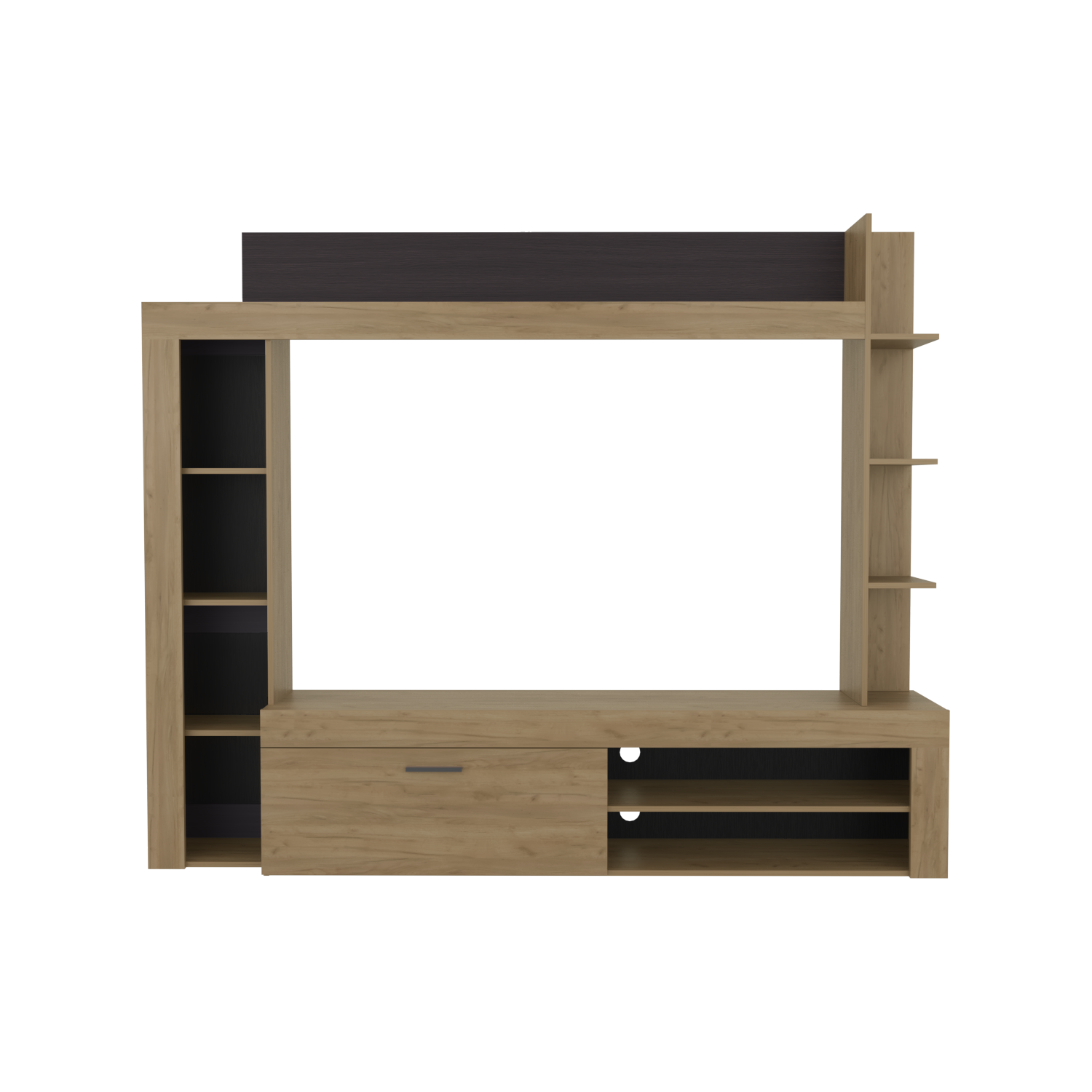 Centro de Entretenimiento Cecil Fresno Europeo y Wengue 215.8x178.1cm para TV Hasta 70 Pulgadas con Diez Compartimientos