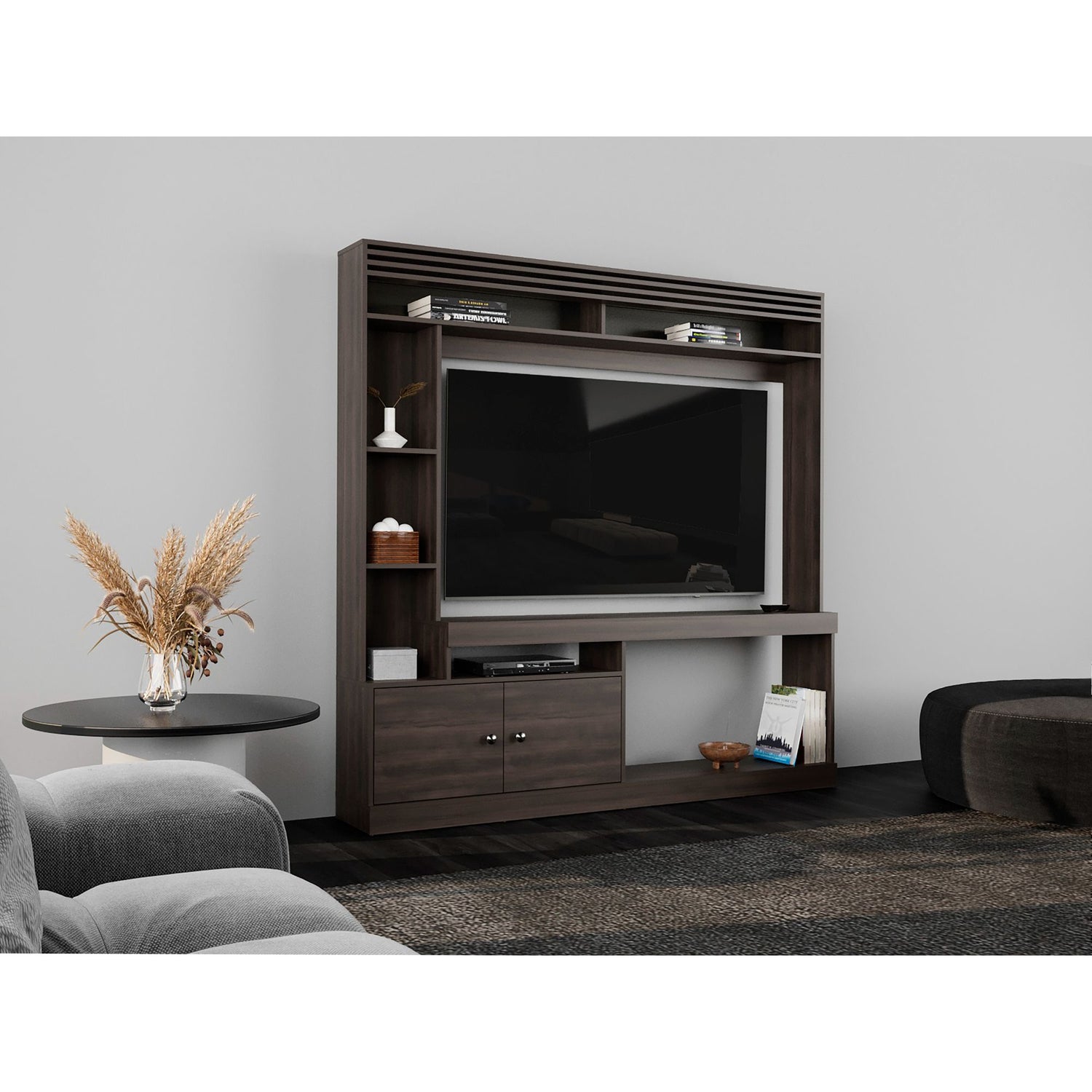Centro de Entretenimiento Dante Nogal 180x180.6cm Para TV Hasta 55 Pulgadas