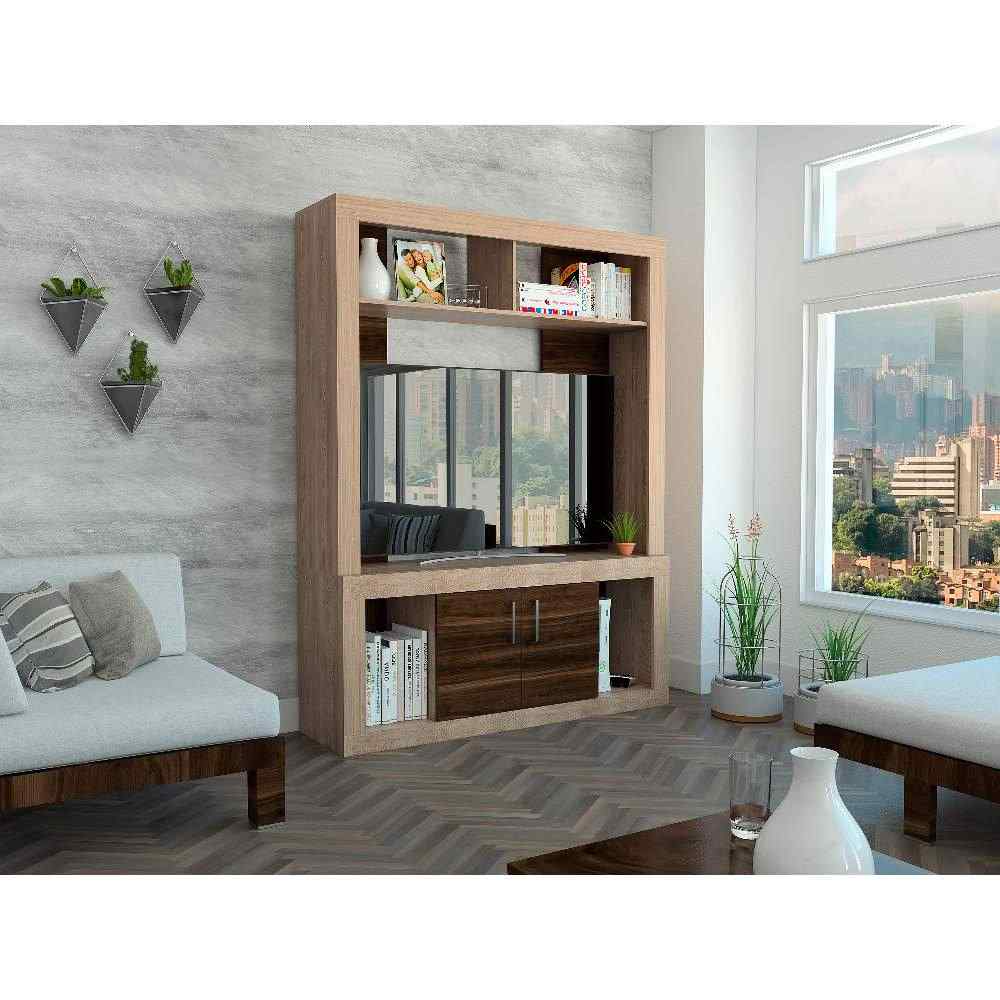 Déjate sorprender con el diseño tan espectacular de este centro de entretenimiento Alicia. Su simetría lo hace cada vez más llamativo siempre que lo veas. Está hecho en una combinación de finos colores miel y plomo, en acabados de madera aglomerada premium. En la parte central tiene un espacio para ubicar un televisor hasta de 55 pulgadas, y en las zona superior e inferior de la estructura tiene algunos espacios para ubicar tus objetos personales y equipos de audio y video, los espacios inferiores con puertas abatibles. Es un mueble ideal para vivir experiencias únicas en tu hogar.