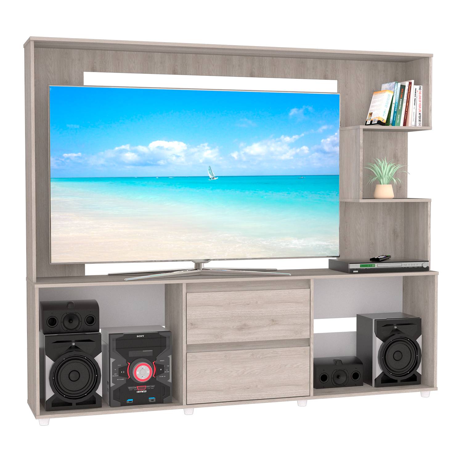 Centro de Entretenimiento Ceniza 200x173.3cm Para TV Hasta 65 Pulgadas con Dos Cajones