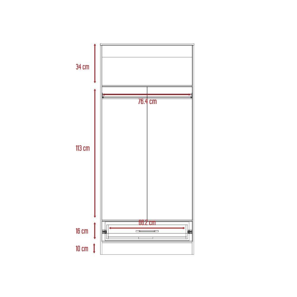 Una elegante opción para guardar tus prendas más refinadas, este guardarropa cuenta con un tallado en madera aglomerada de una calidad insuperable en colores duna y blanco, haciendo este closet una gran opción tanto para tu dormitorio como para tu sala o estudio. Al abrir sus dos puertas abatibles se encuentra un amplio espacio donde colgar tus prendas en su tubo incorporado y situar tus accesorios en la parte inferior, además cuenta con un amplio cajón y un espacio en la parte superior para almacenar todo tipo de objetos.