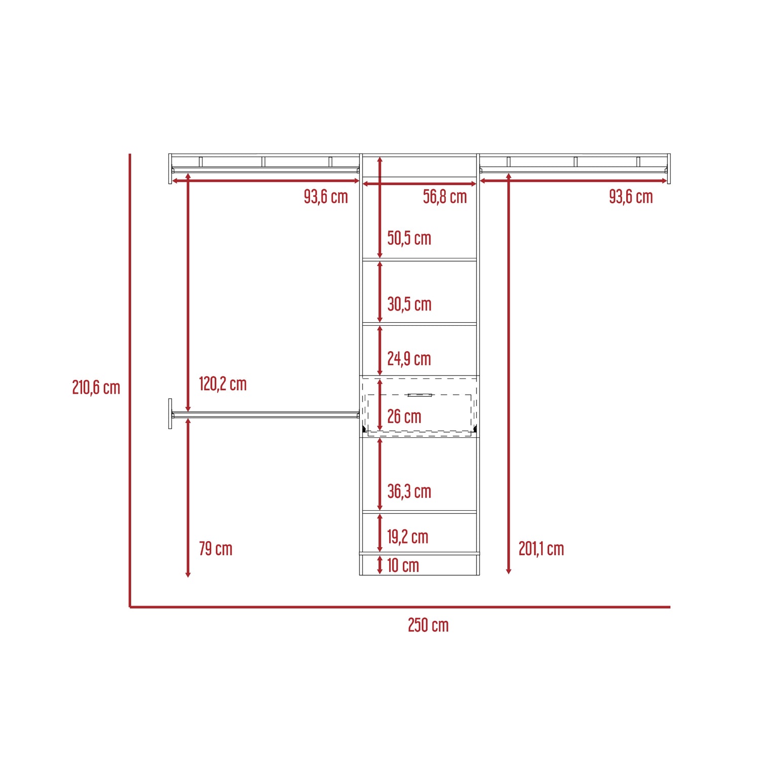 Closet Abierto Manchester Wengue 250x210.6cm con Un Cajón