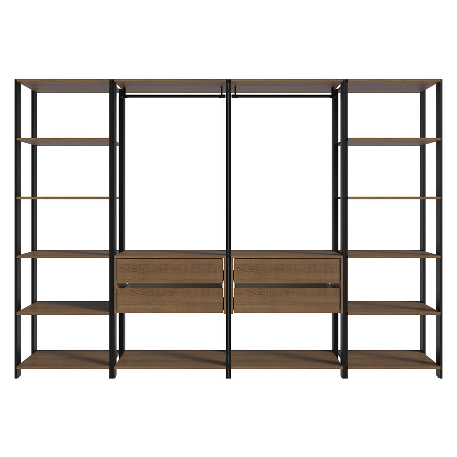 Closet Abierto Valencia Marron y Negro 258x180cm con Diez Entrepaños Modular