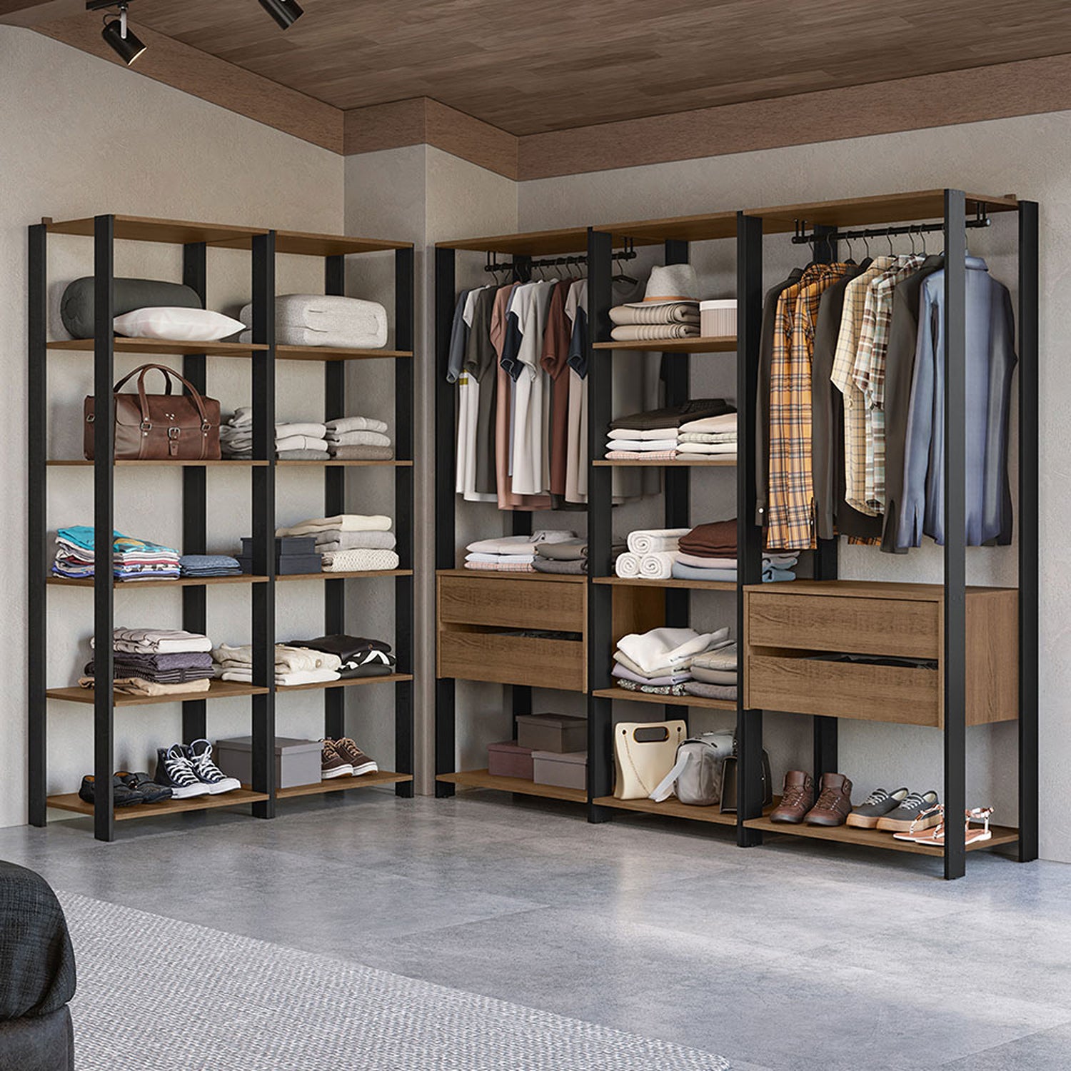 🚚 Envío GRATIS - Ver Cobertura aquíCloset Abierto Valencia Marron y Negro 417x180cm con Diez Entrepaños está agotado y se enviará tan pronto como vuelva a estar disponible.