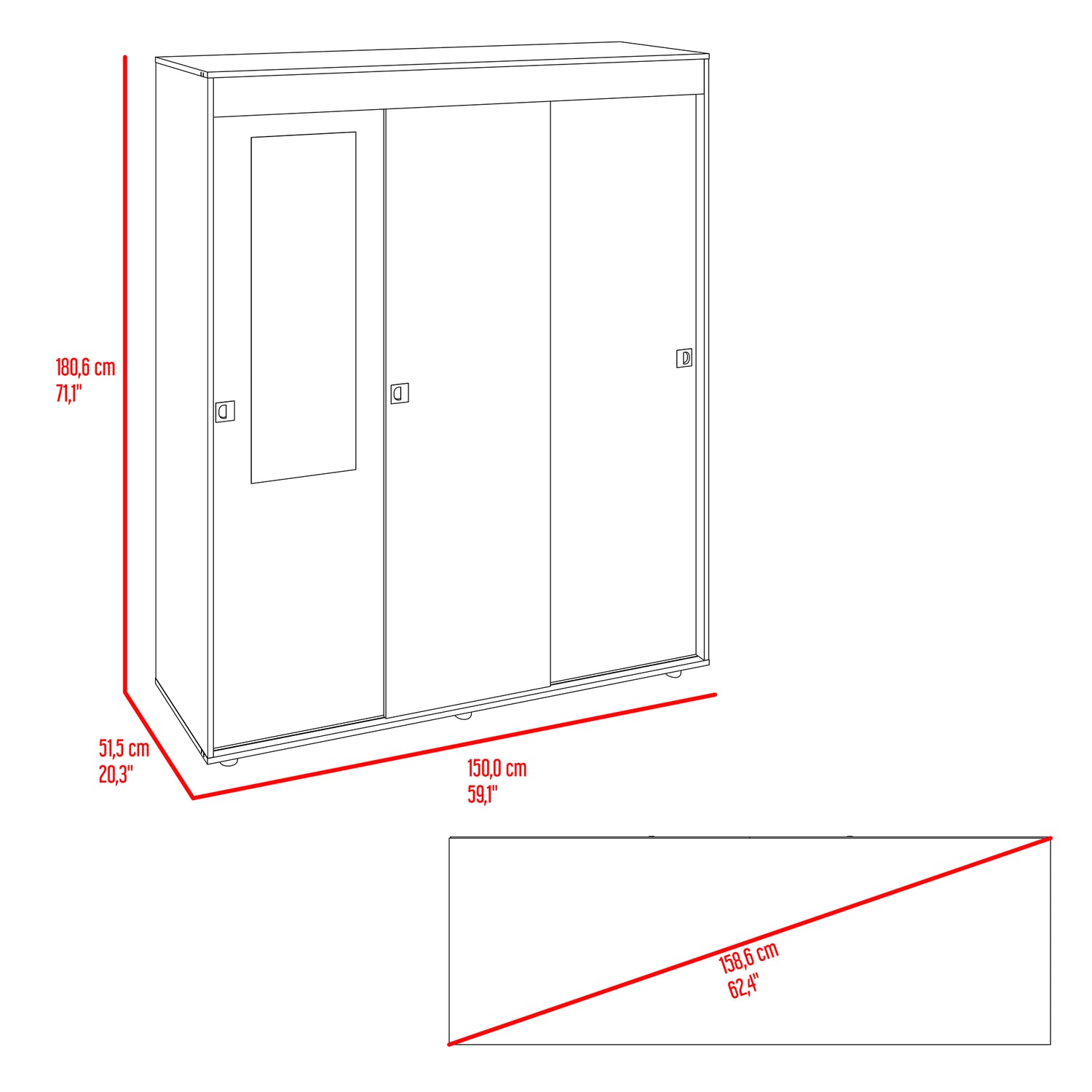 Closet Angelo Fresno Europeo y Wengue 150x180.6cm con Tres Compartimientos y con dos Puertas Coredizas