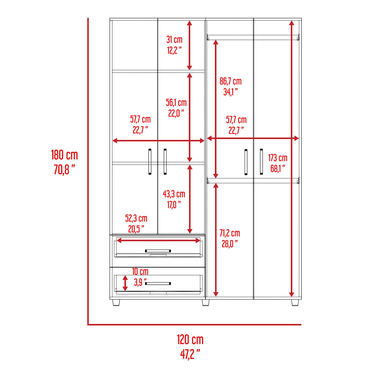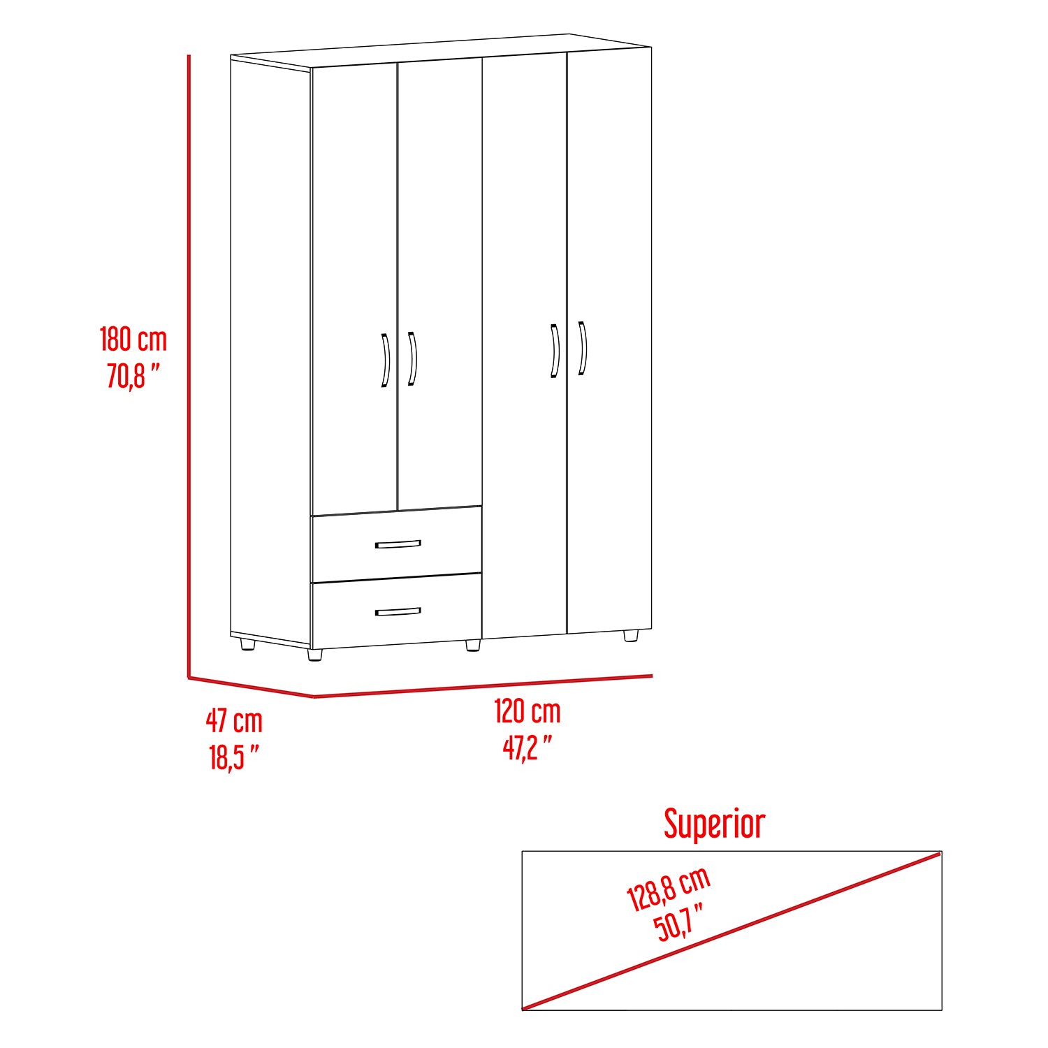 Closet Ankora Ceniza 120x180cm con 2 Cajones con 2 Entrepaños