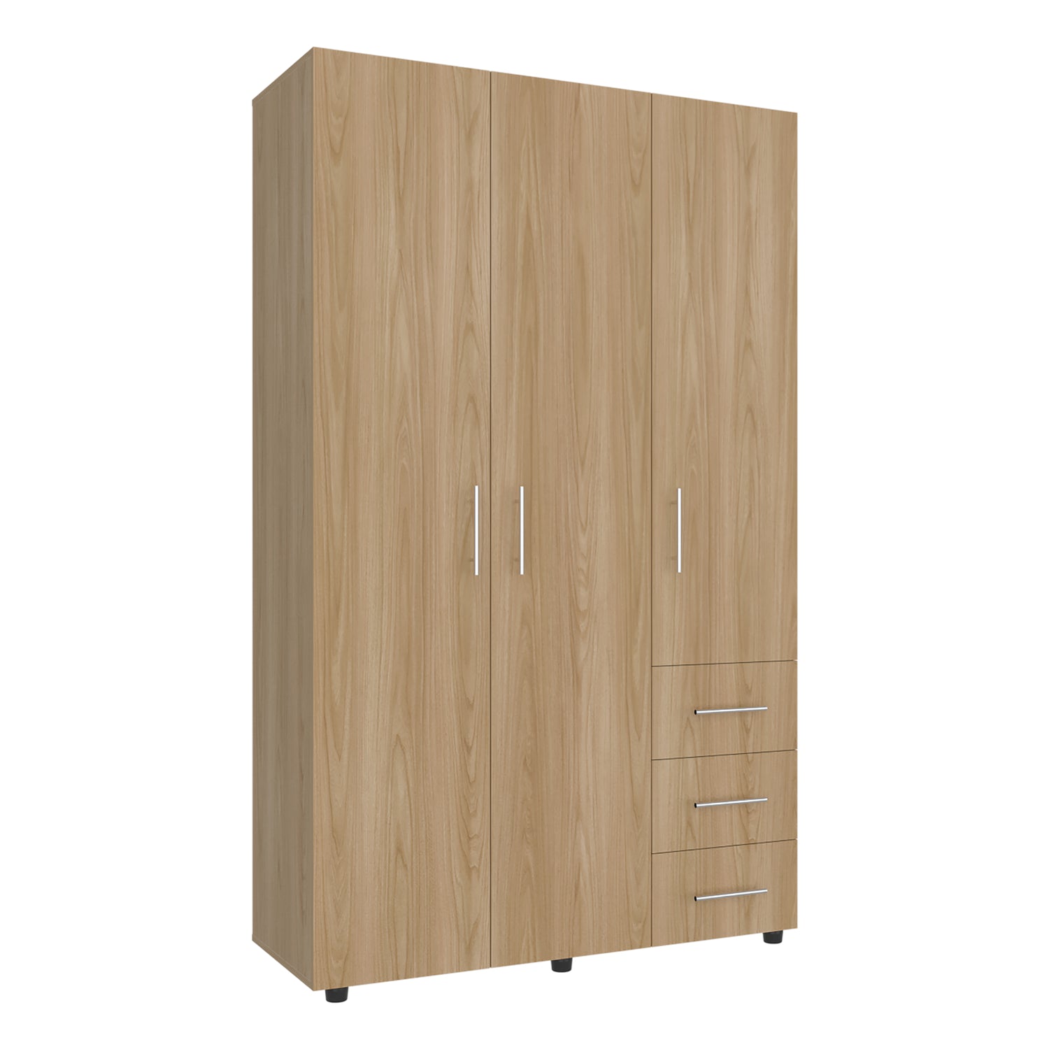 Closet Atenas Fresno Europeo y Blanco 120x200cm con Tres Puertas y con Tres Cajones