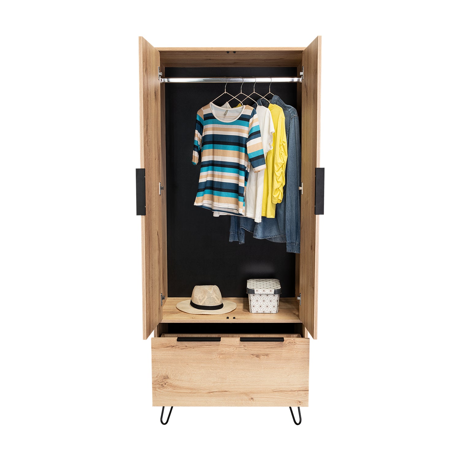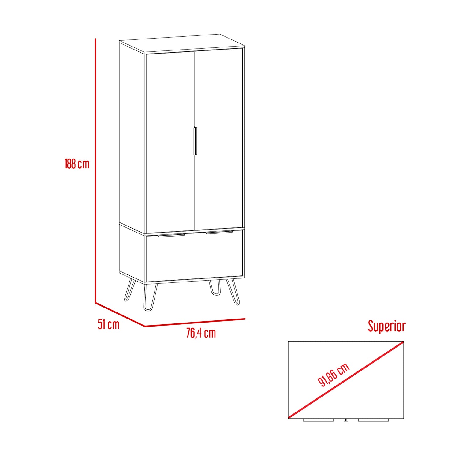 Closet Augusta Duna y Wengue 76.4x188cm con 1 Cajón y con Colgadero de Ropa