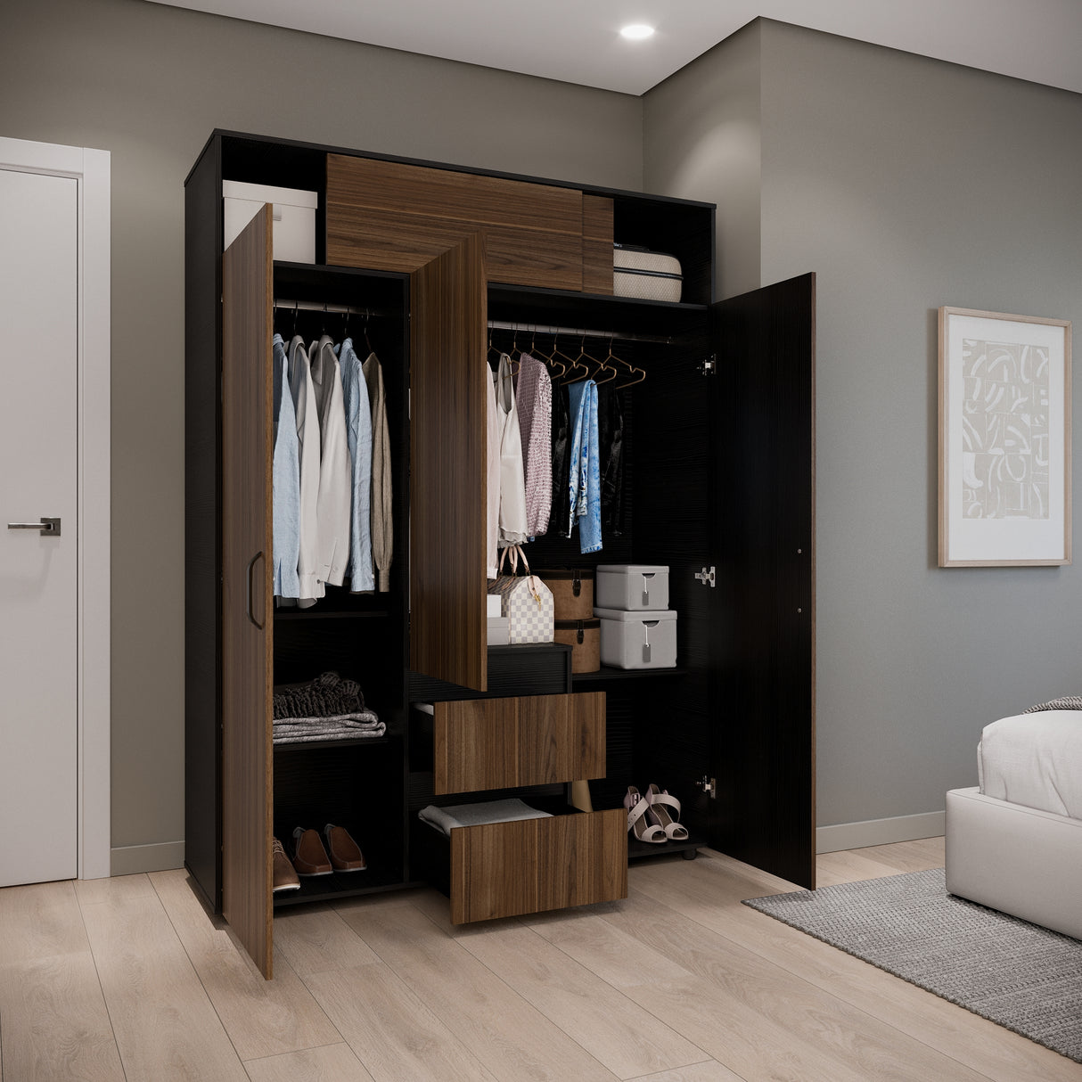 Closet Aurora Gales y Wengue 150x200cm con Dos Cajones y con Ocho Compartimientos