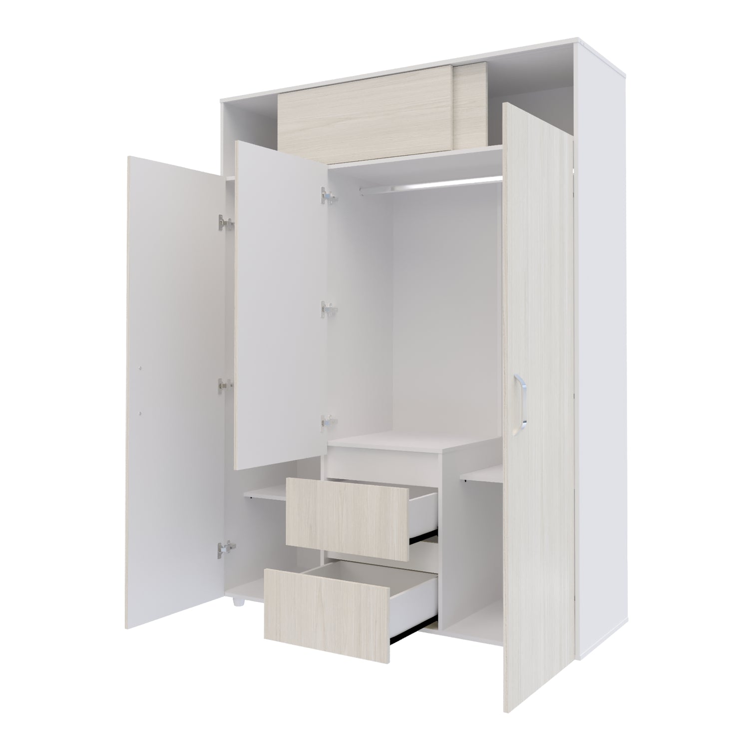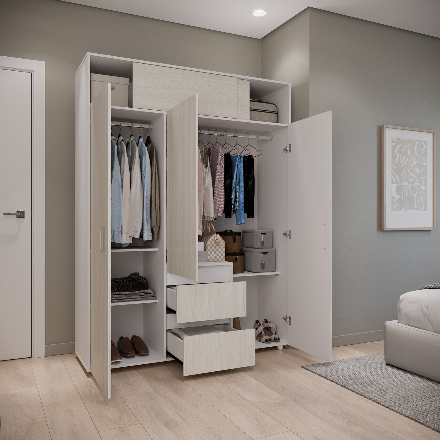 Closet Aurora Niebla y Blanco 150x200cm con Dos Cajones y con Ocho Compartimientos